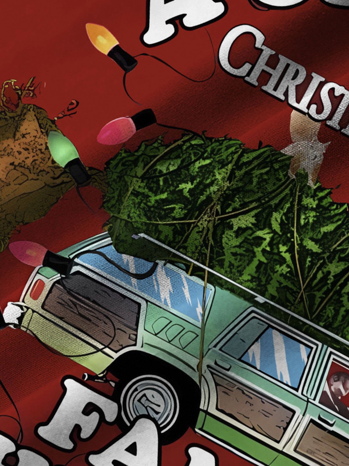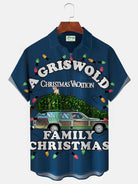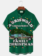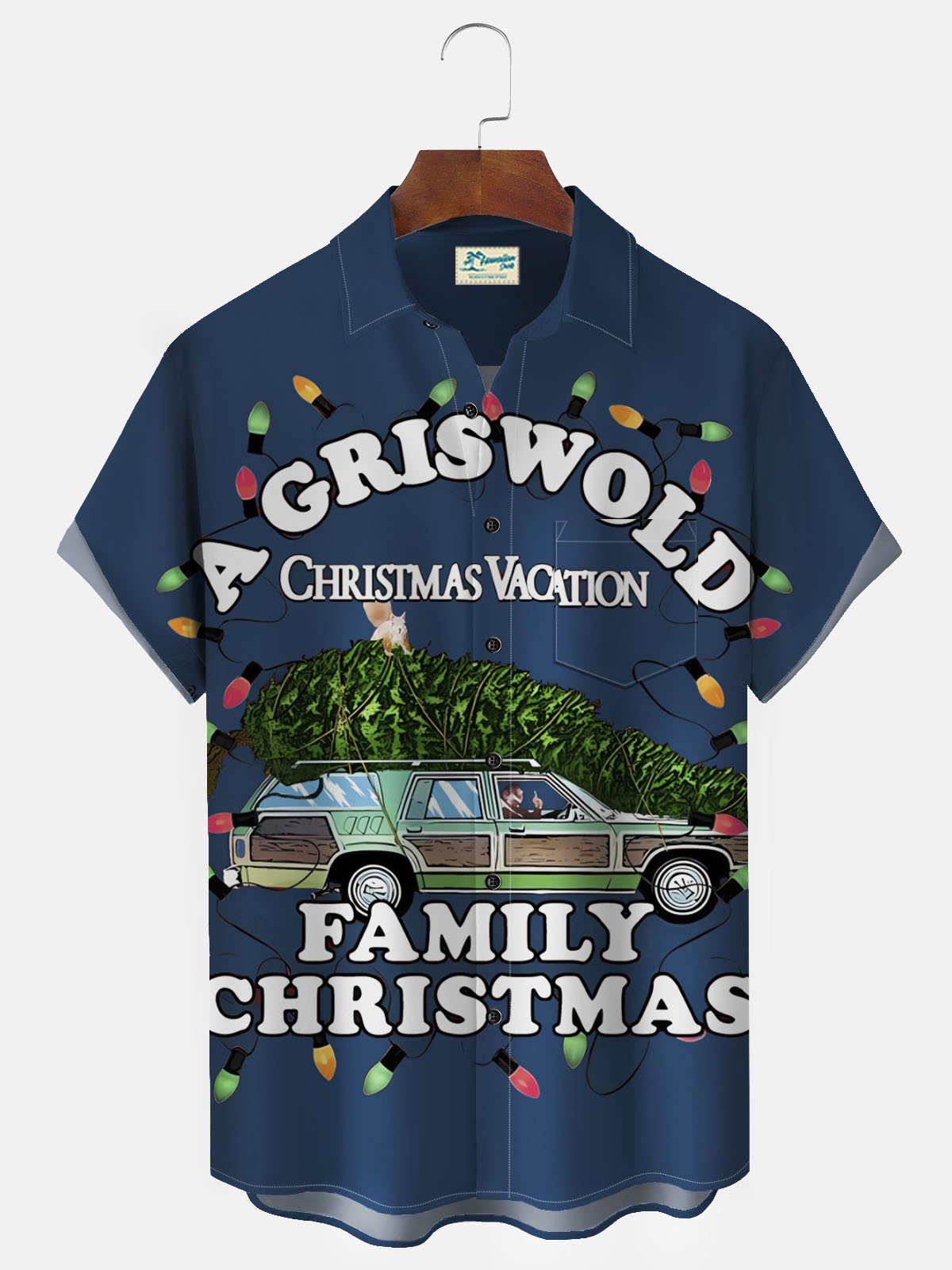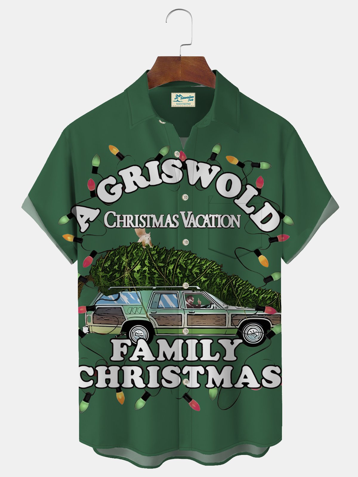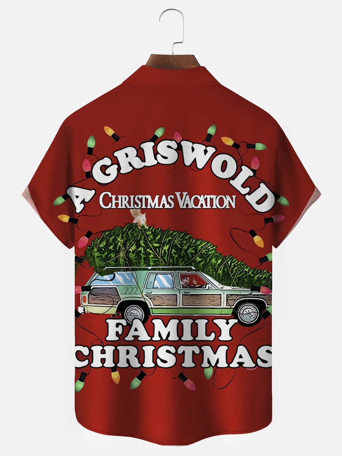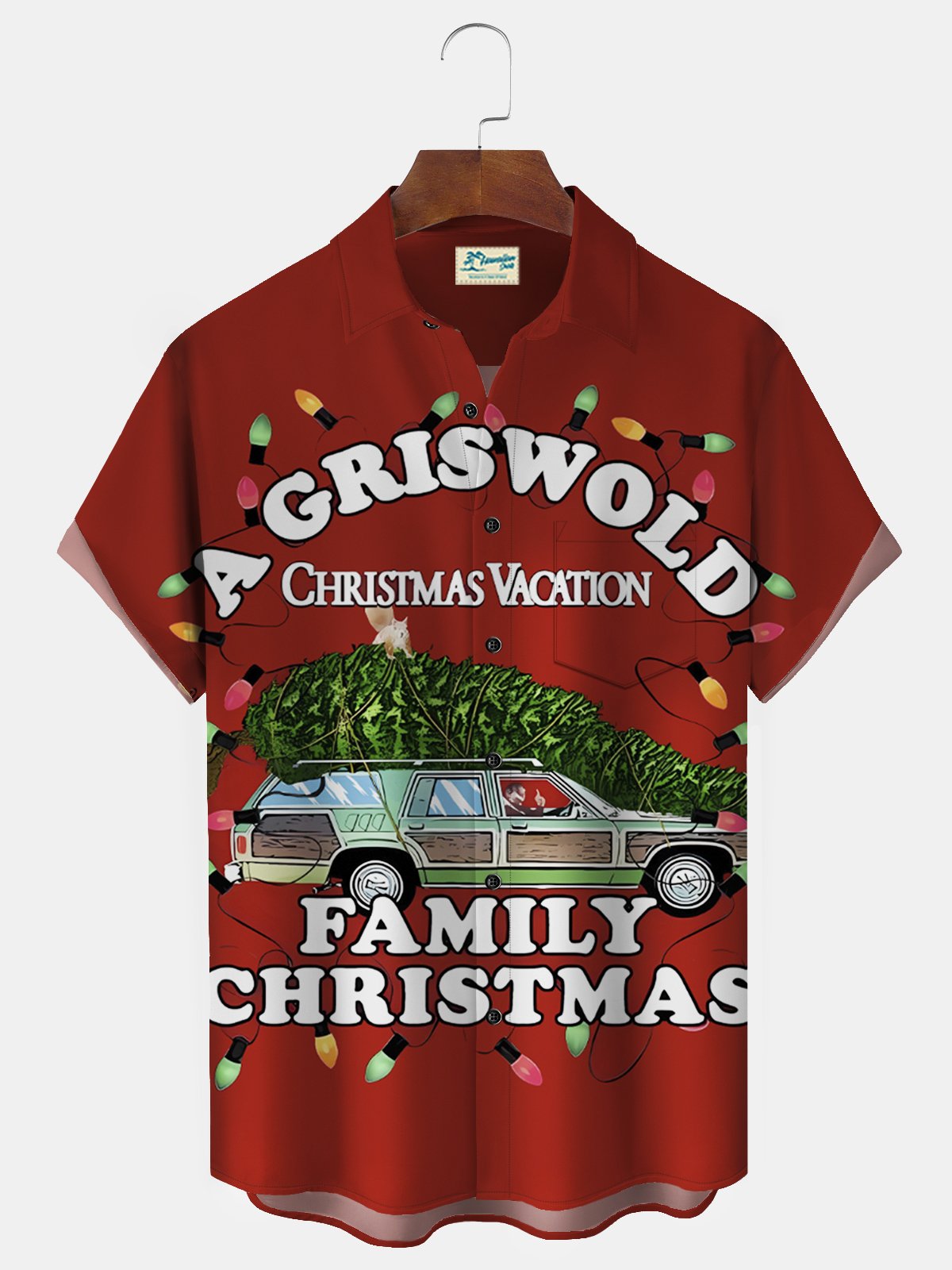 Alohadaddy Vintage Christmas Holiday Red Men's Shirt Truck Christmas Tree Cartoon Art Light Pocket Camp Shirt Big Tall