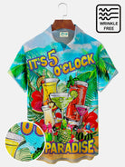 5 O'clock in Paradise Fun Casual Men's Hawaiian Shirts Wrinkle Free Seersucker Plus Size Beach Holiday Shirts