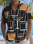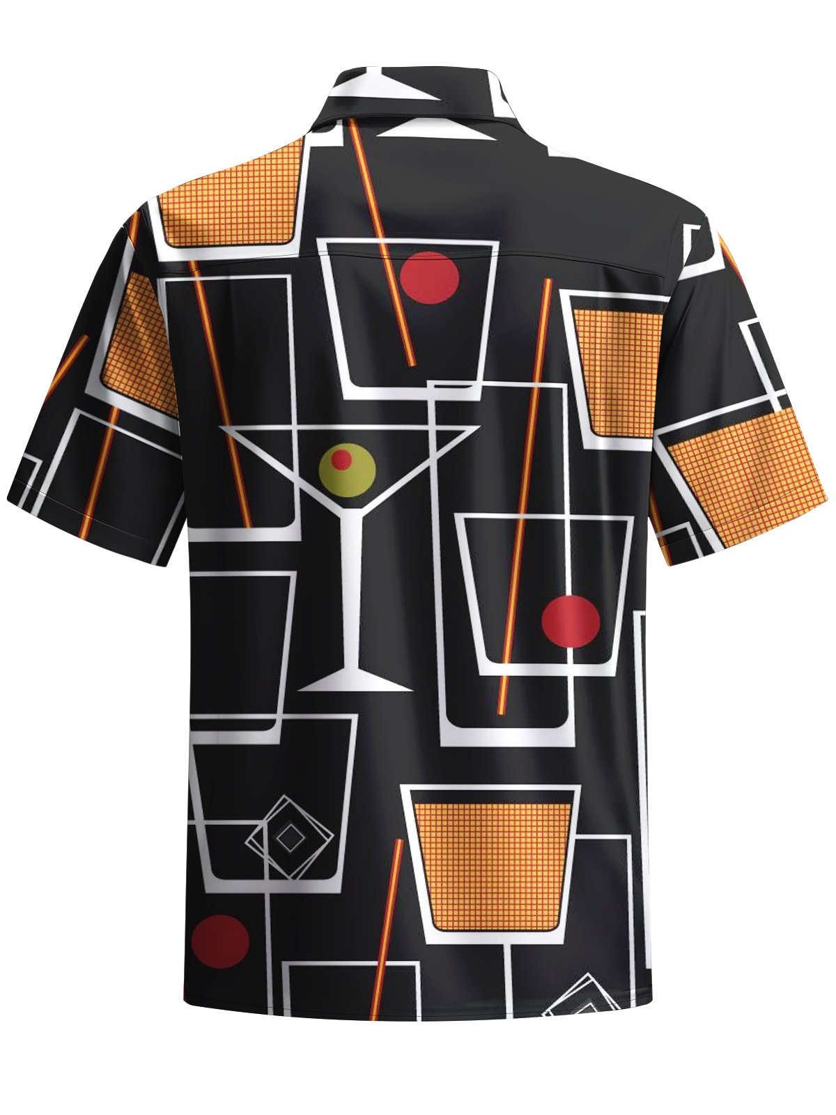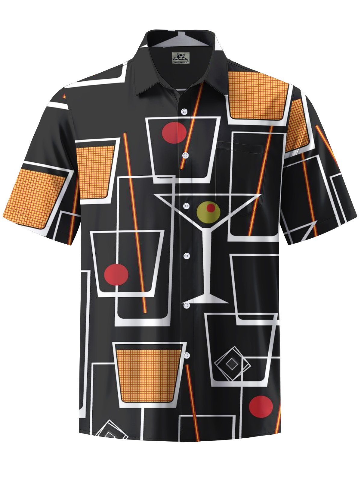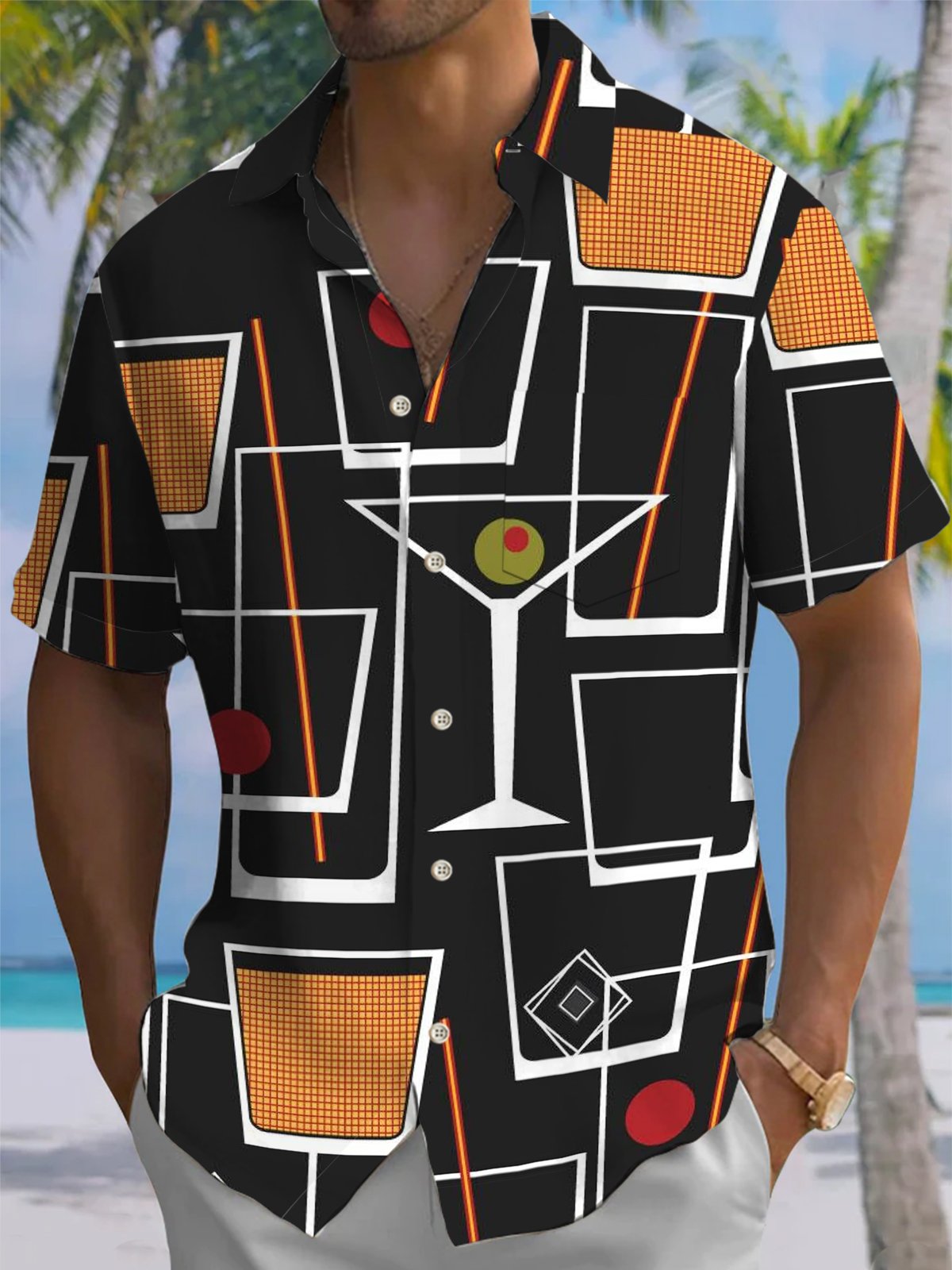Alohadaddy® Casual Cocktail Geometric Print Stretch Pocket Button Men's Short Sleeve Shirt Big & Tall