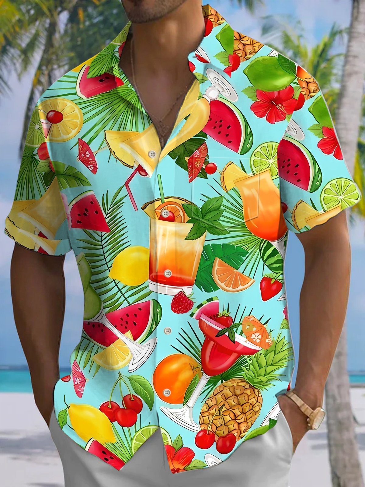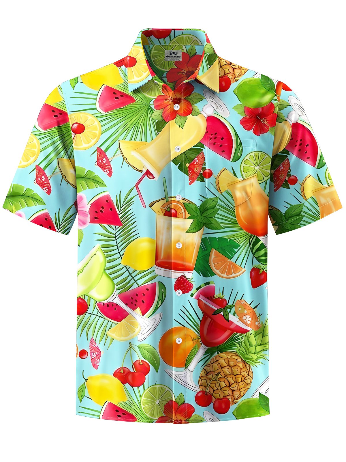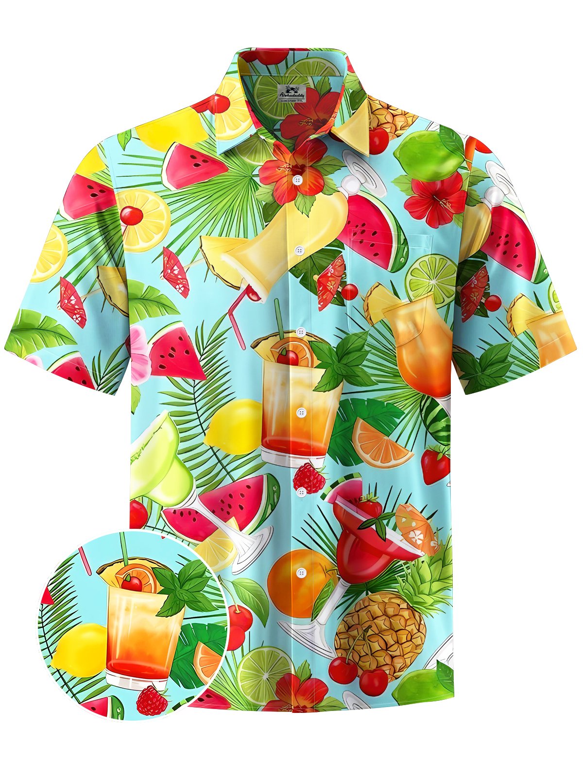 Alohadaddy® Hawaiian Cocktail Palm Leaves Art Print Chest Pocket Mens Short Sleeve Shirt Big & Tall
