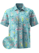 Alohadaddy® Hawaiian Cocktail Print Stretch Large Size Chest Pocket Men's Short Sleeve Shirt