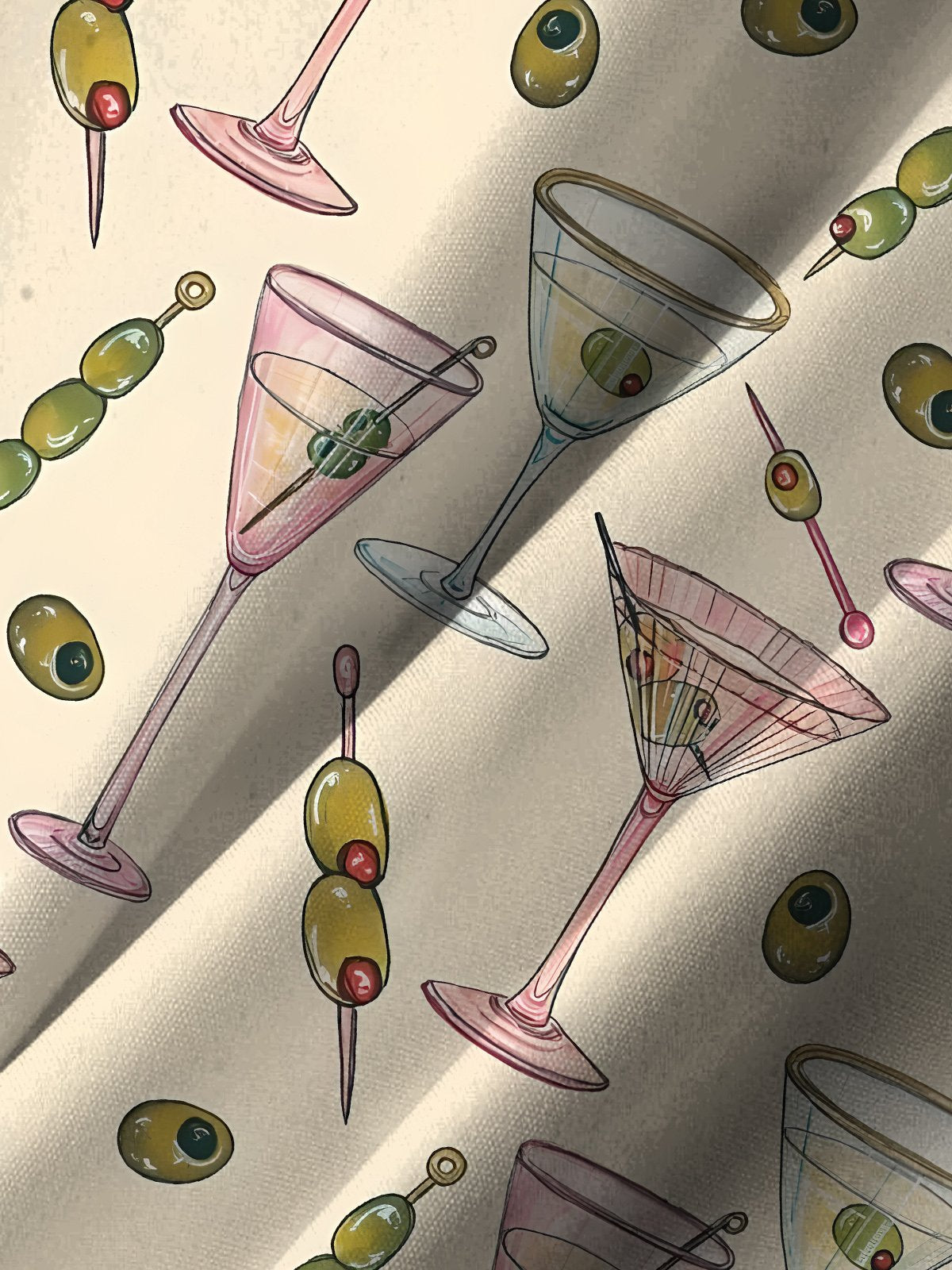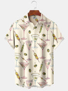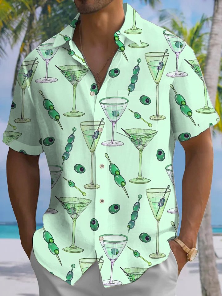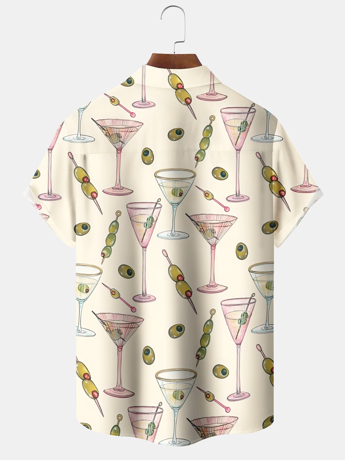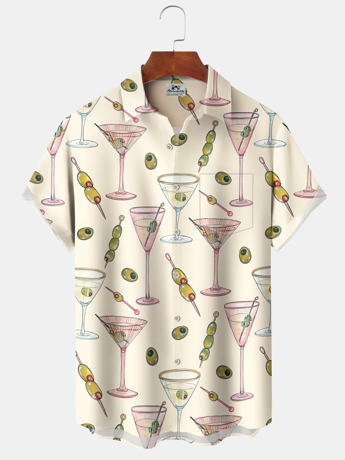 Alohadaddy® Wine Glass Fruit Art Print Chest Pocket Stretch Oversized Hawaiian Shirt