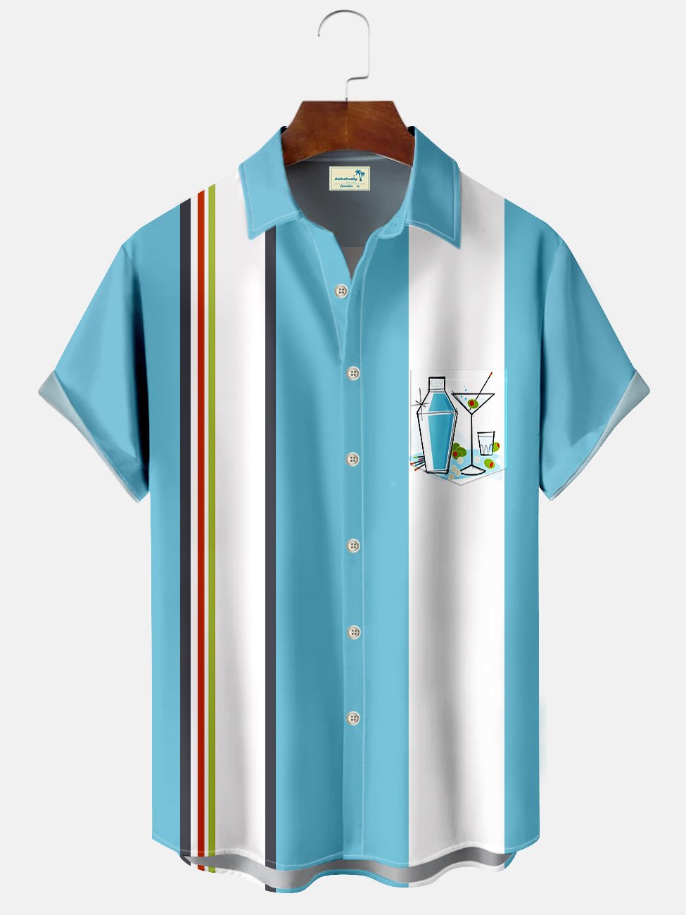 Alohadaddy Abstract Mid-century Cocktail Bowling Printed Casual Plus Size Shirts
