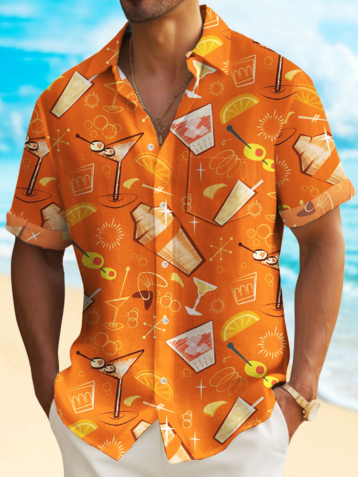 Alohadaddy Beach Vacation Cocktail Men's Hawaiian Shirt Bartender Art Camp Pocket Shirt Big Tall