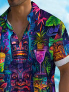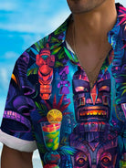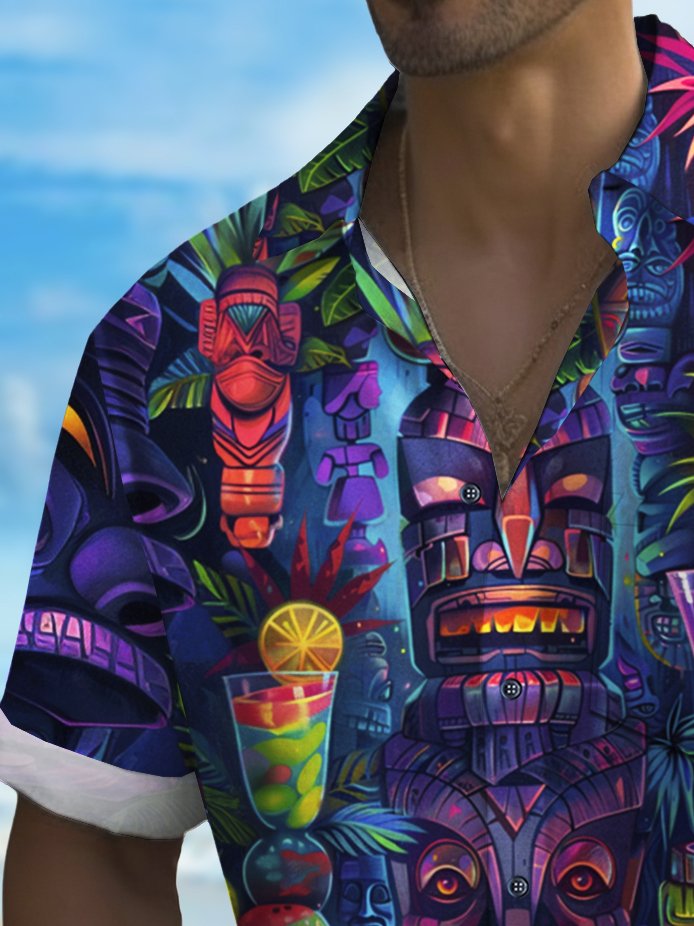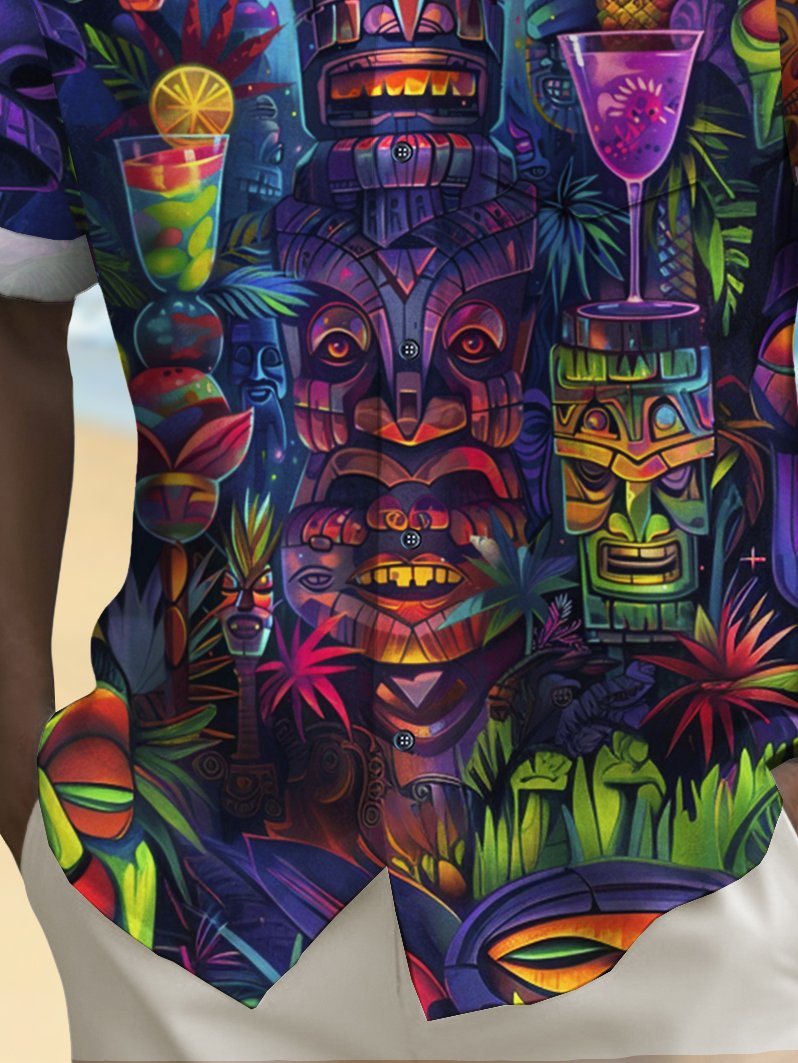 Alohadaddy Beach Vacation Men's Hawaiian Shirt Tiki Cocktail Tiki Bar Print Pocket Camping Shirt Big Tall