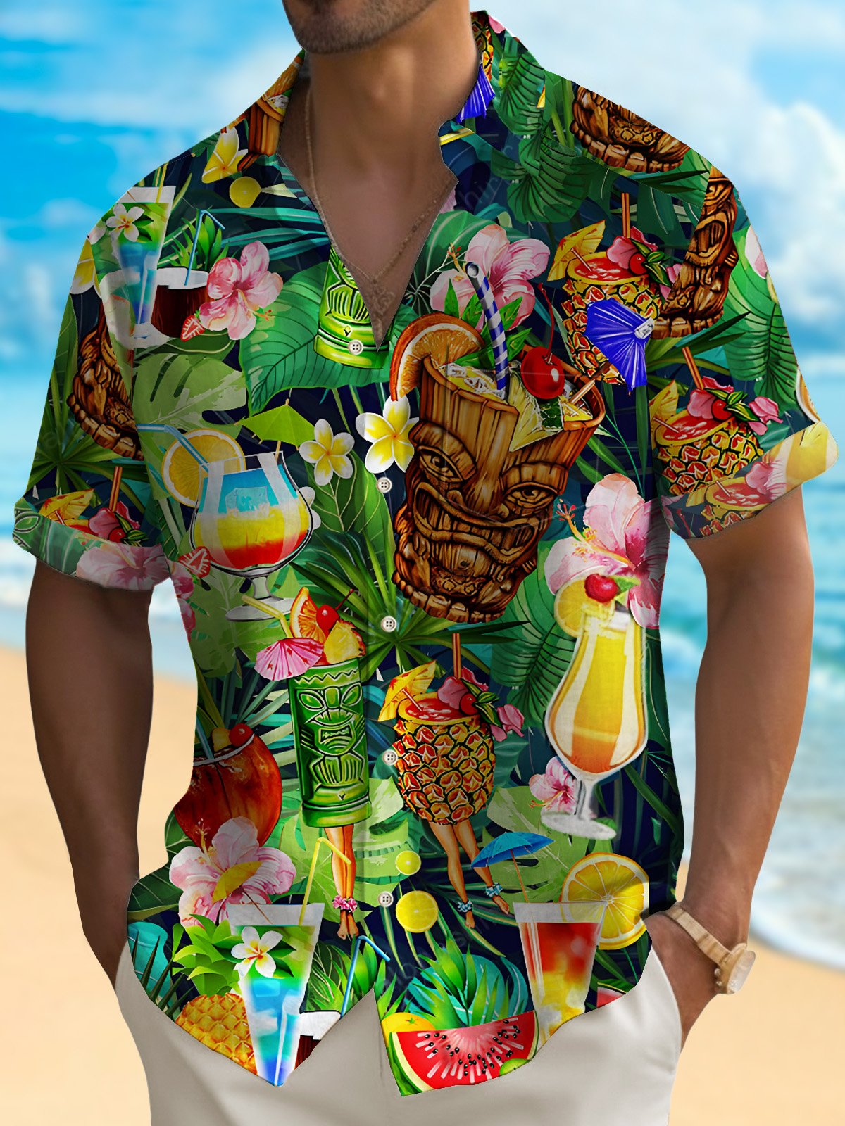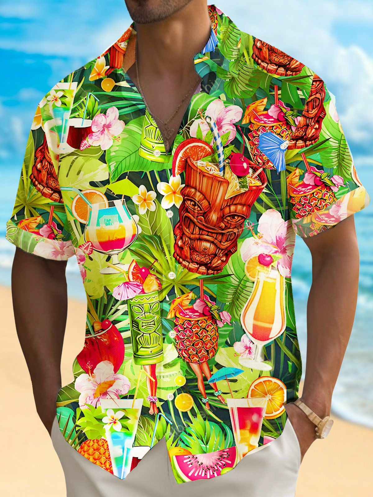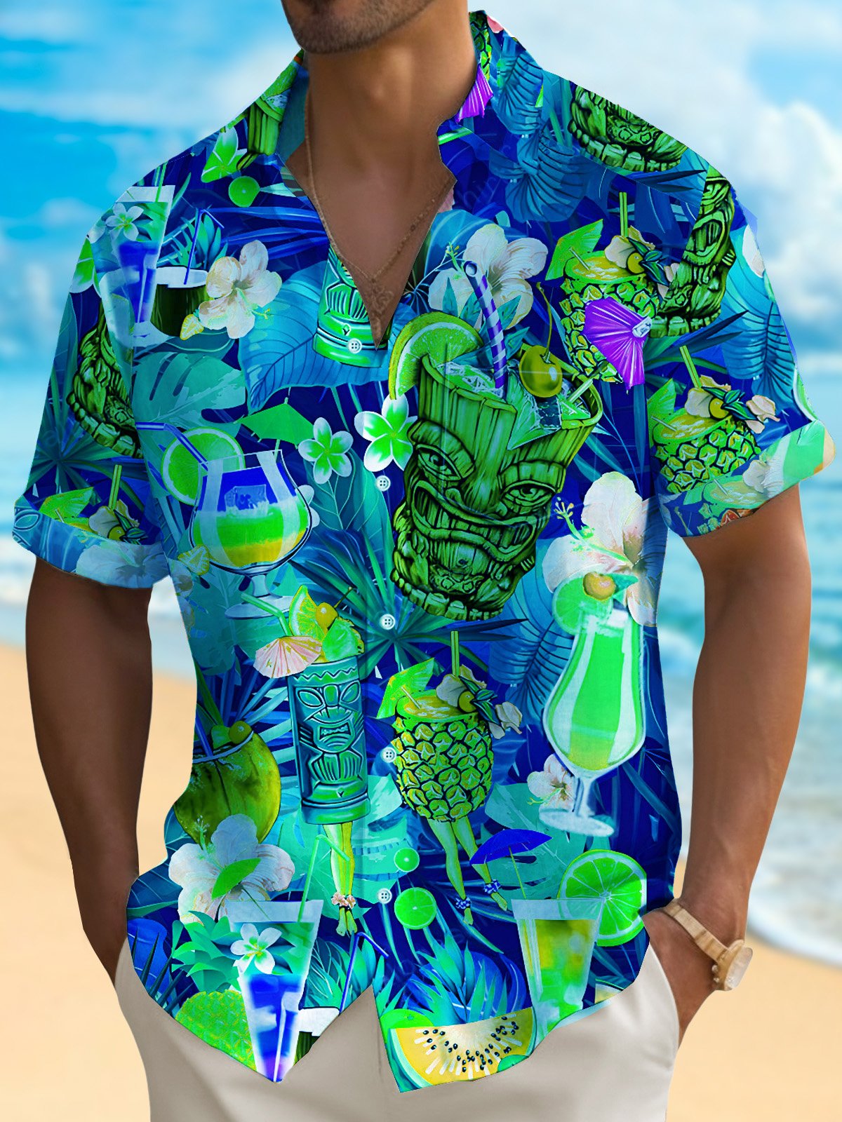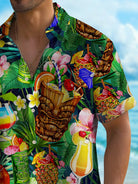 Alohadaddy Beach Vacation Tiki Cup Men's Hawaiian Shirt Stretch Quick Dry Camp Tropical Cocktail Shirt Big Tall