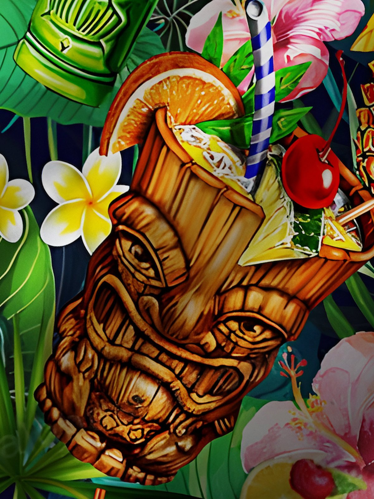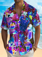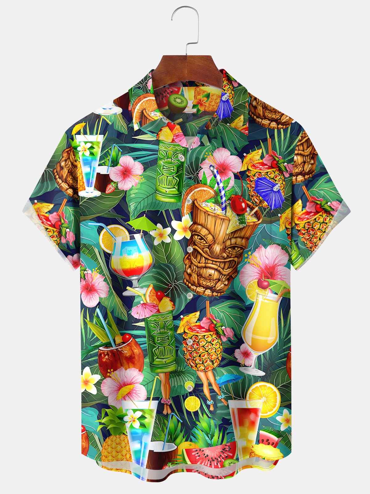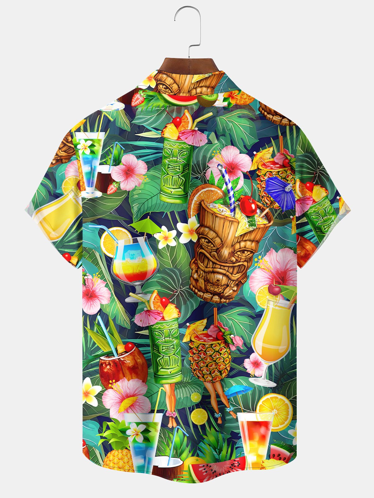 Alohadaddy Beach Vacation Tiki Cup Men's Hawaiian Shirt Stretch Quick Dry Camp Tropical Cocktail Shirt Big Tall