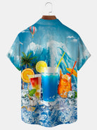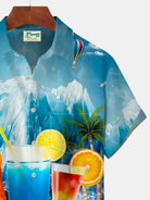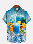 Alohadaddy Beer Cocktail Print Beach Men's Hawaiian Oversized Short Sleeve Shirt with Pockets