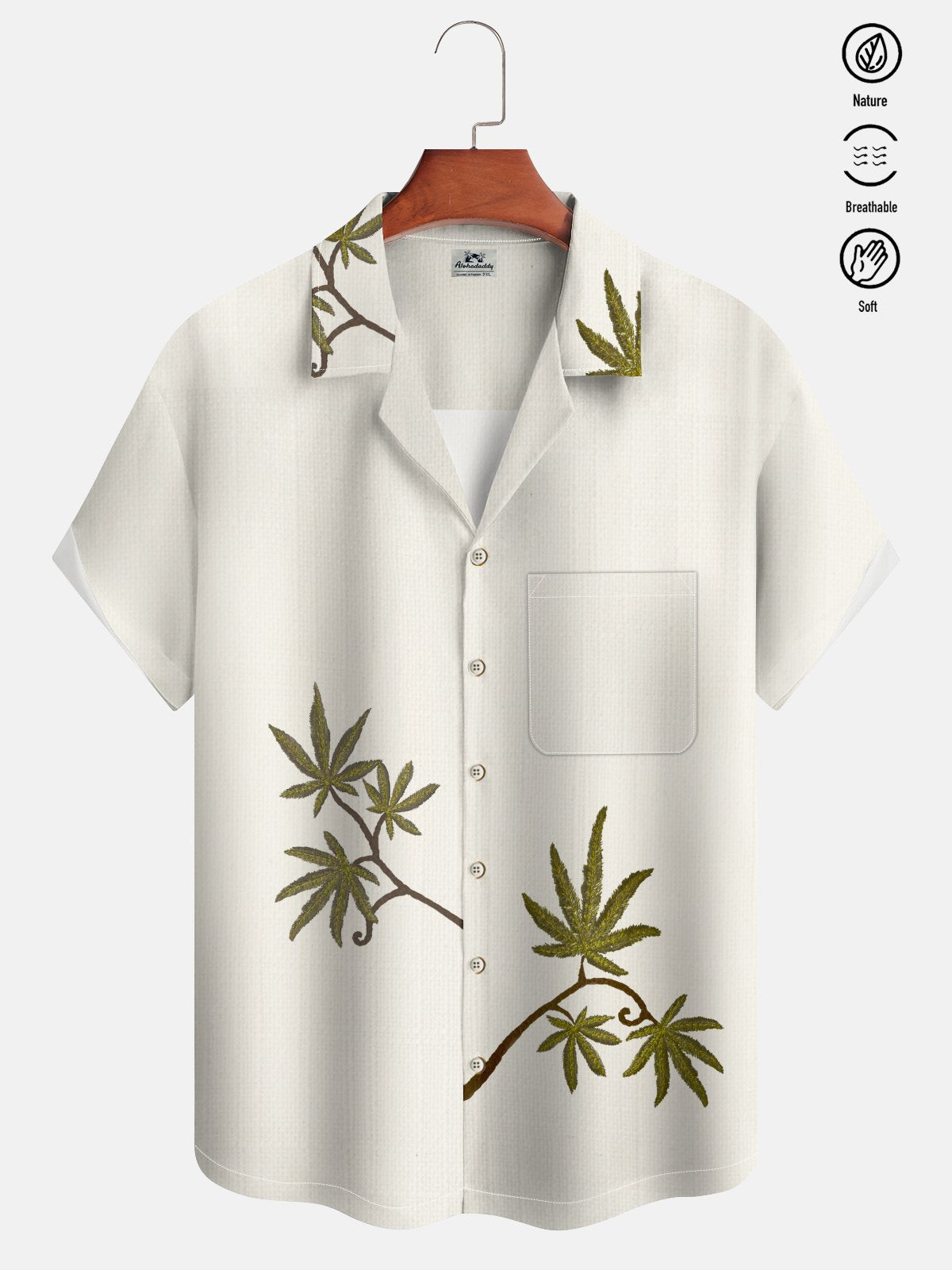 Alohadaddy Casual Everyday Hawaiian Plants Cannabis Leaves Print Art Cuban Collar Polyester Pocket Cardigan Stretch Long Large Size Short Sleeve Shirt