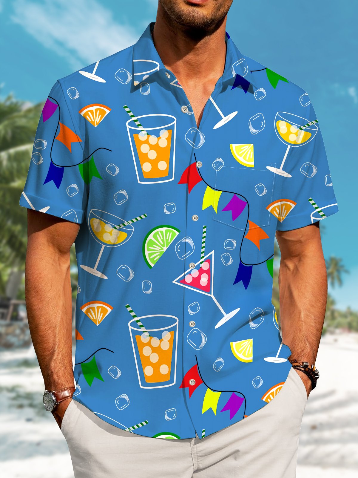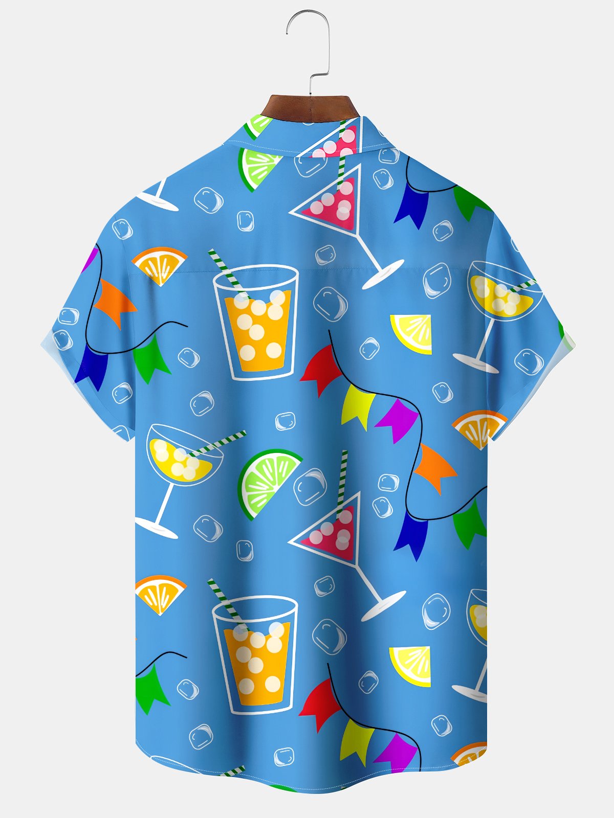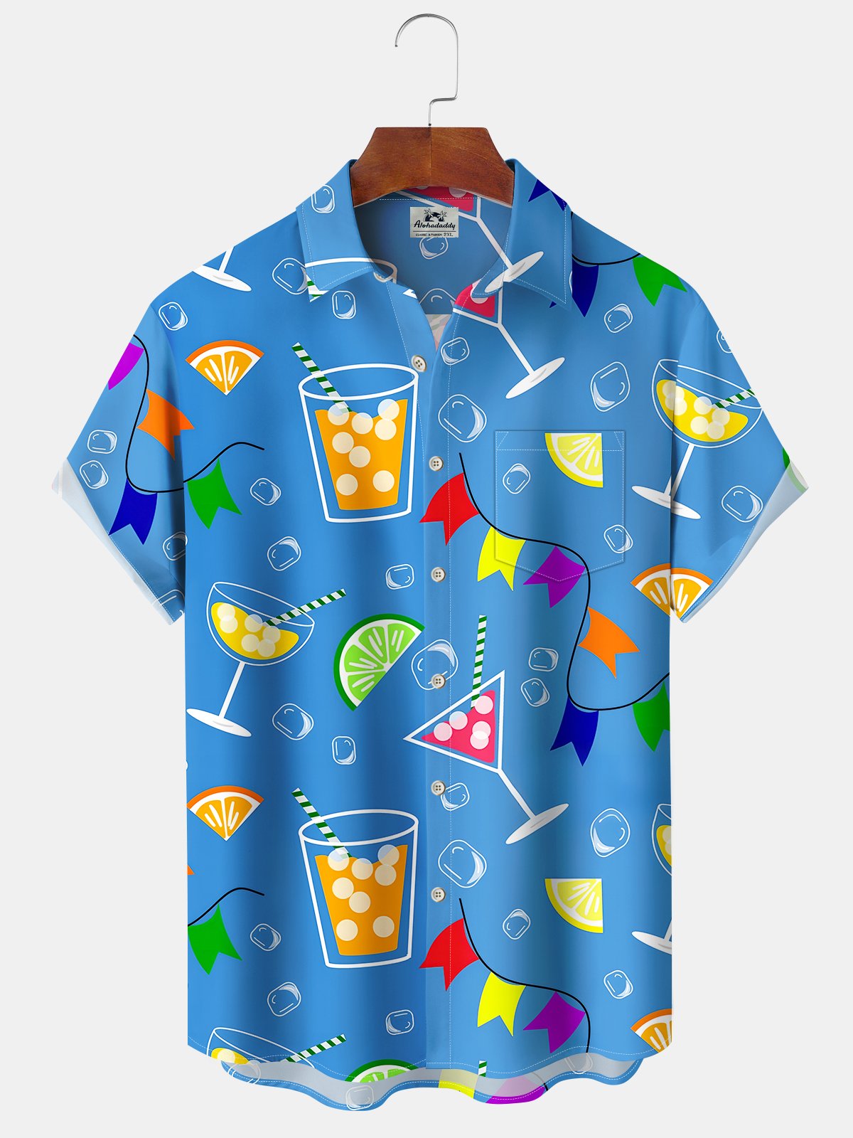 Alohadaddy Casual Hawaiian Wine Glass Print Art Button Cardigan Pocket Stretch Large Size Long Short Sleeve Shirt