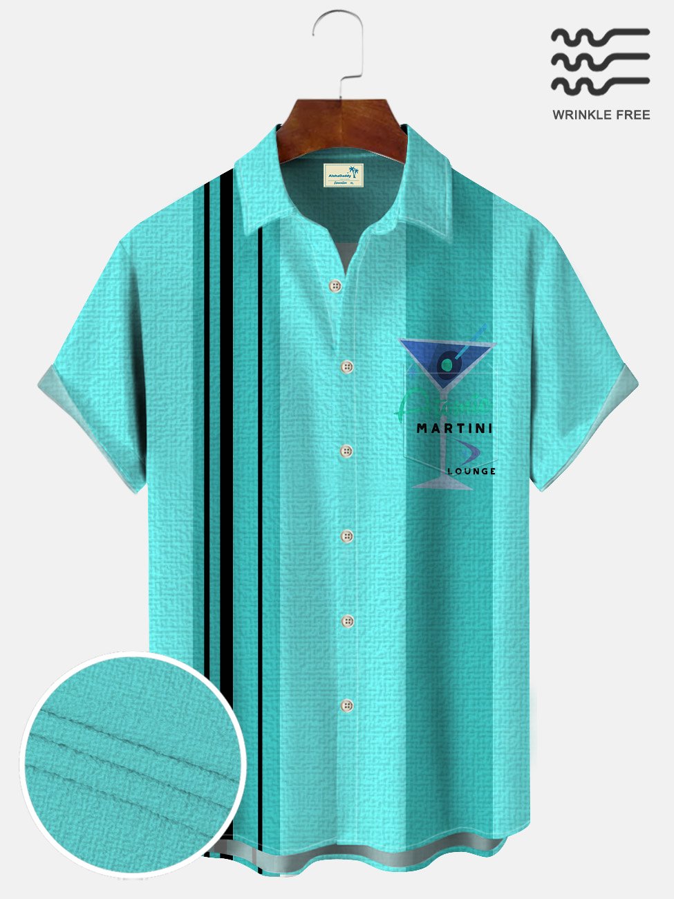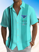 Alohadaddy Cocktail Glass Stripes Men Pocket Button 50S Bowling Commuter Casual Short Sleeve Shirt