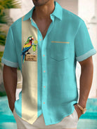 Alohadaddy Hawaiian Parrot Cocktail Print Men's Button Pocket Short Sleeve Shirt