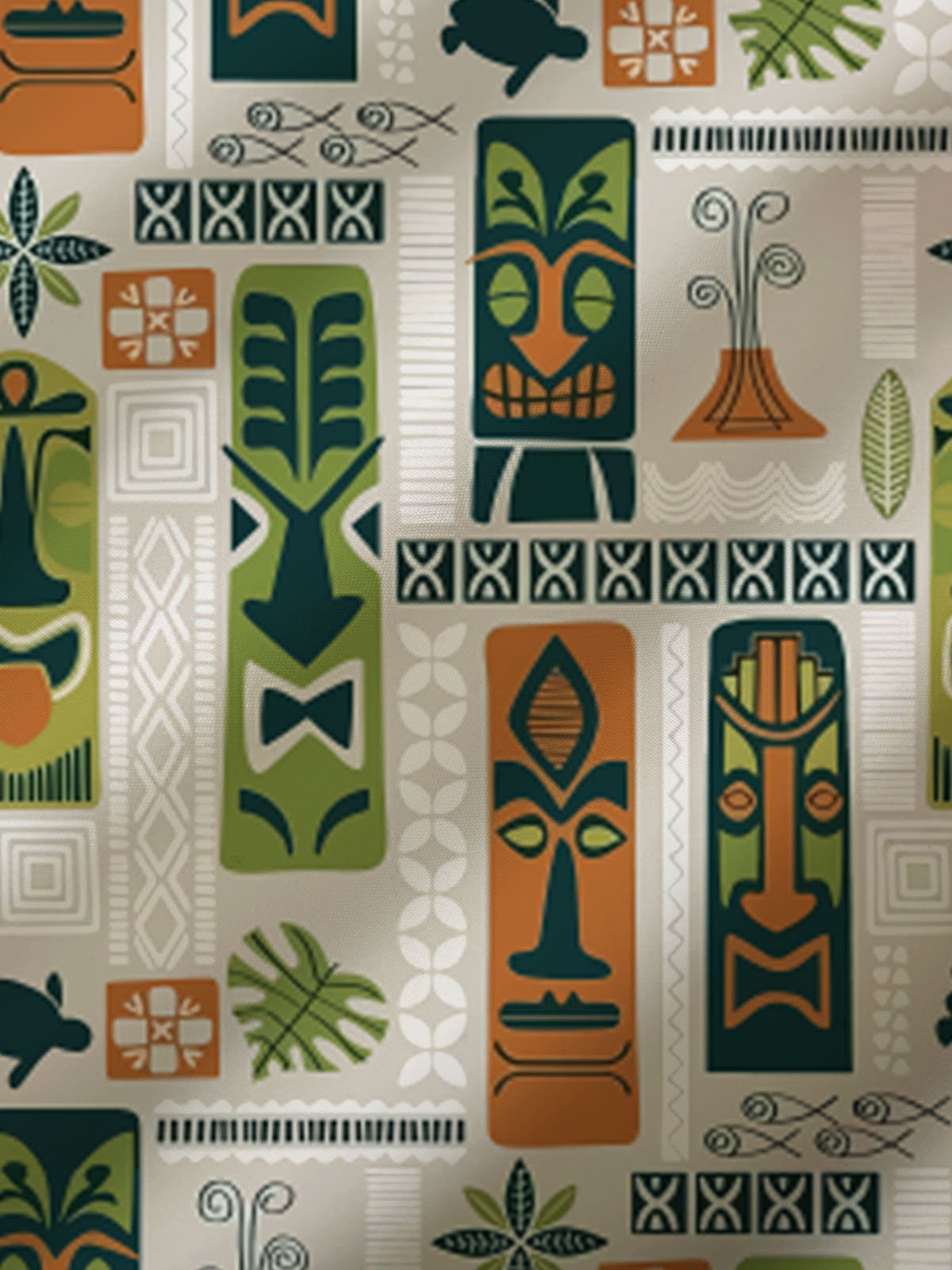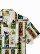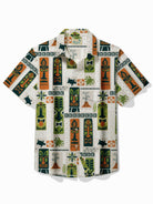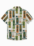 Alohadaddy Hawaiian Tiki Cocktail Print Men's Button Pocket Short Sleeve Shirt