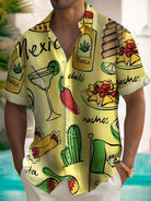 Alohadaddy Mexican Cocktail Cinco de Mayo Chili Print Men's Pocket Short Sleeve Shirt