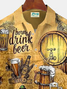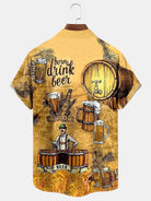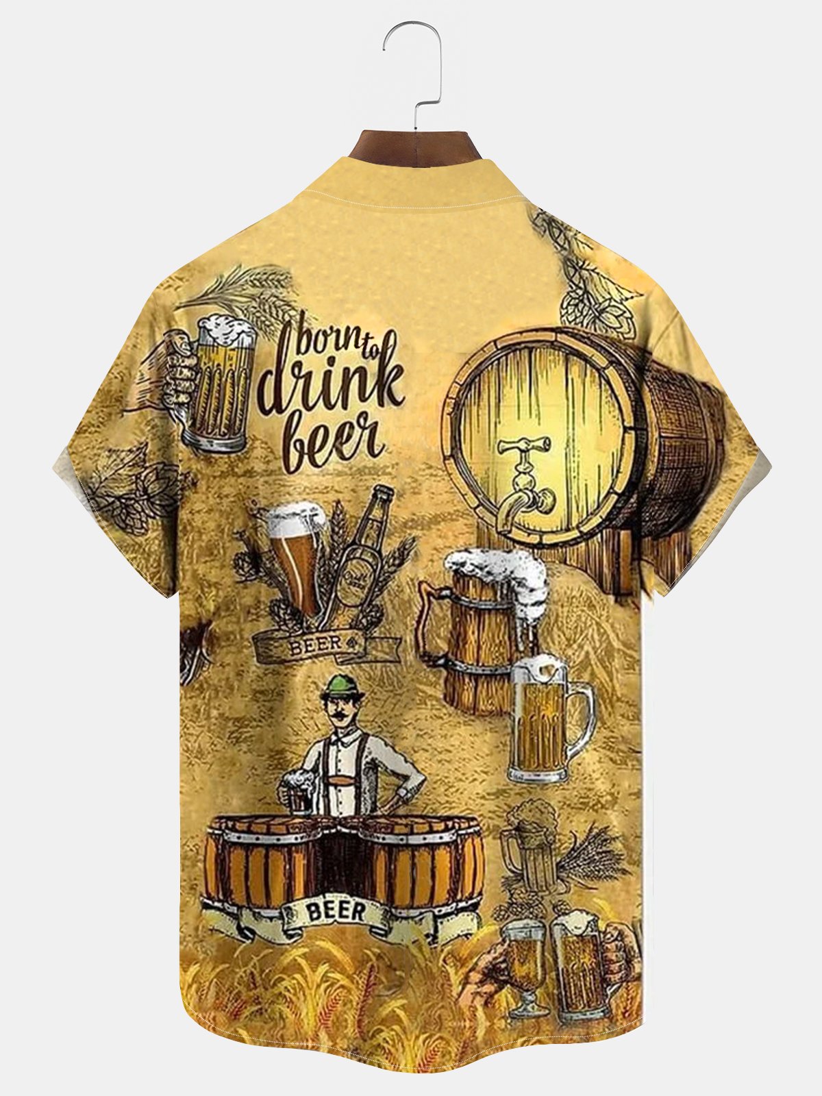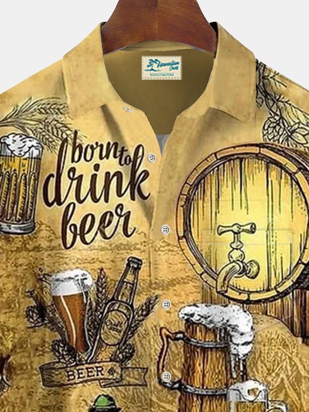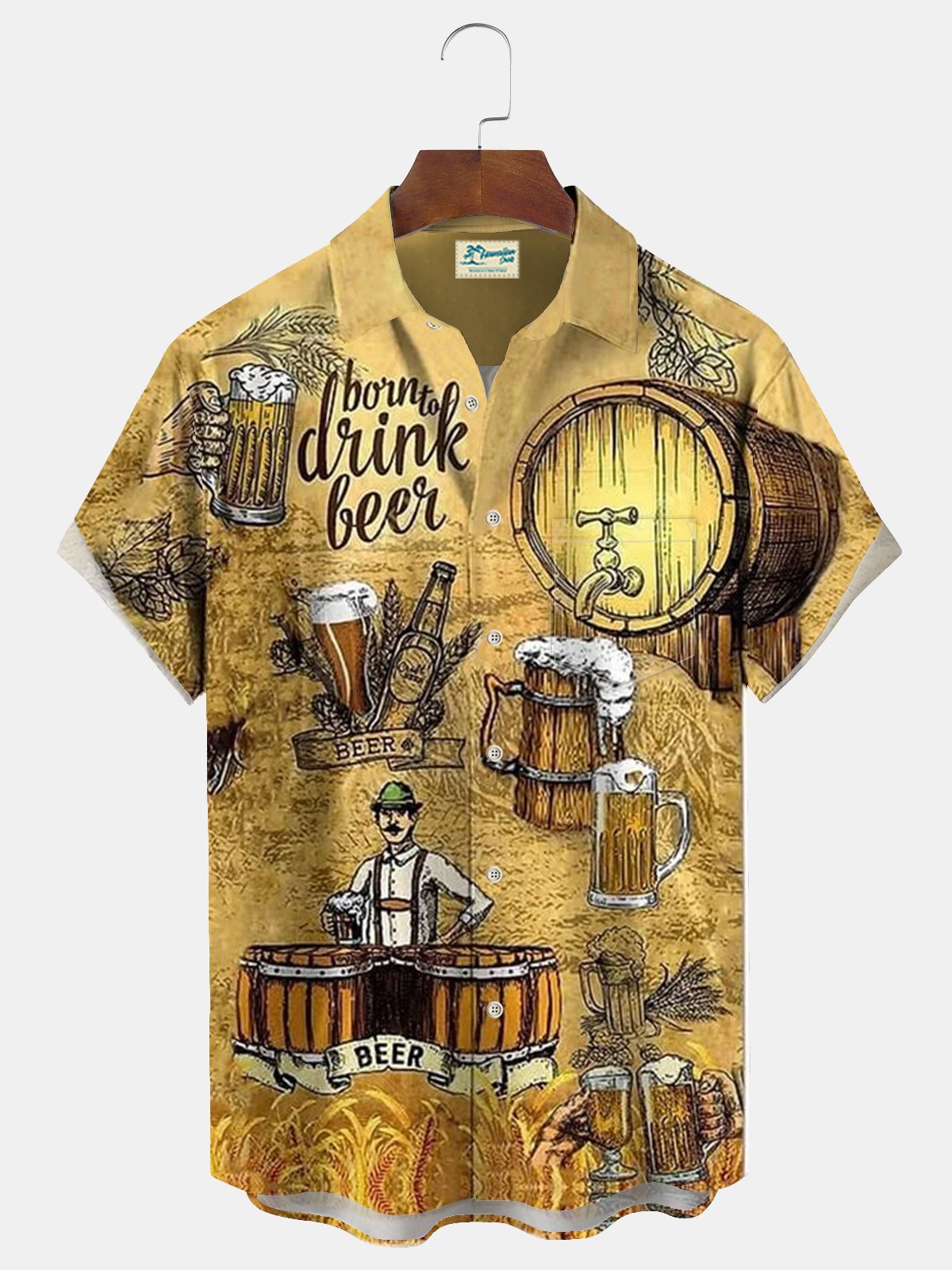 Alohadaddy Oktoberfest Beer Print Men's Chest Pocket Stretch Shirt Big Tall