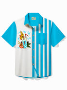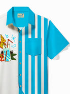Alohadaddy Vintage Cocktail Blue Bowling Shirt Striped Cartoon Camping Pocket Shirt Big Tall