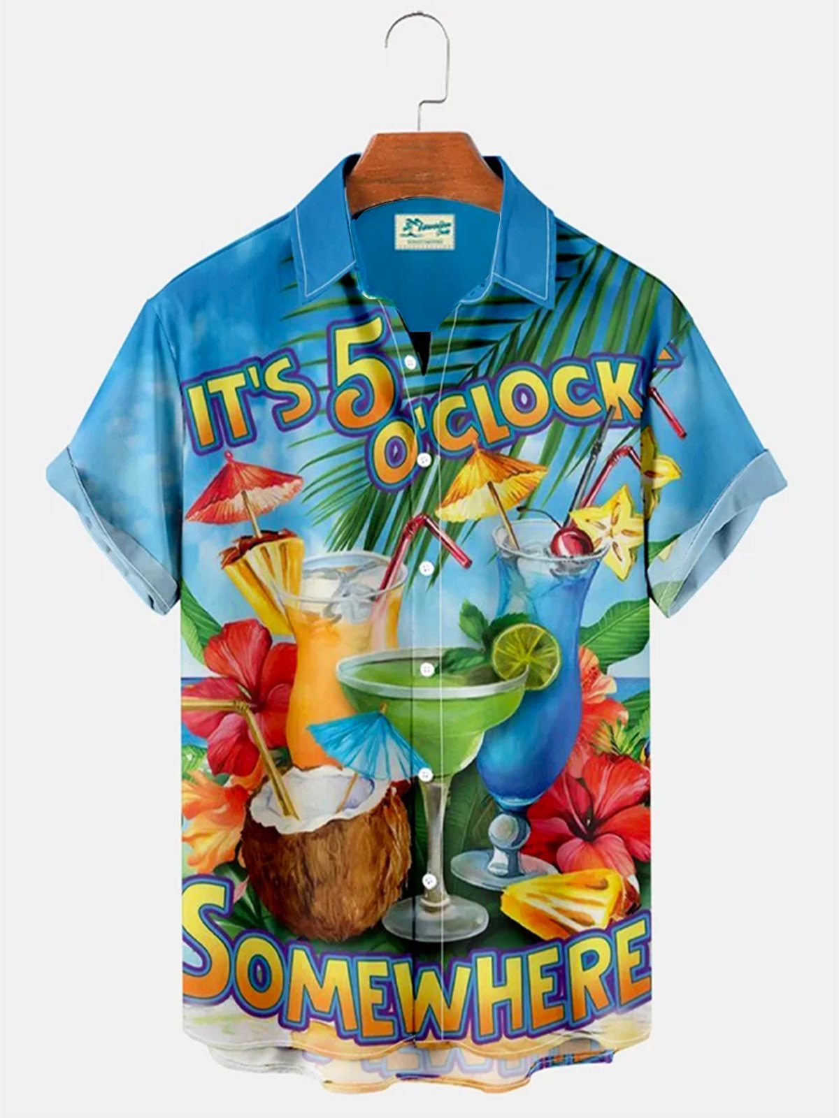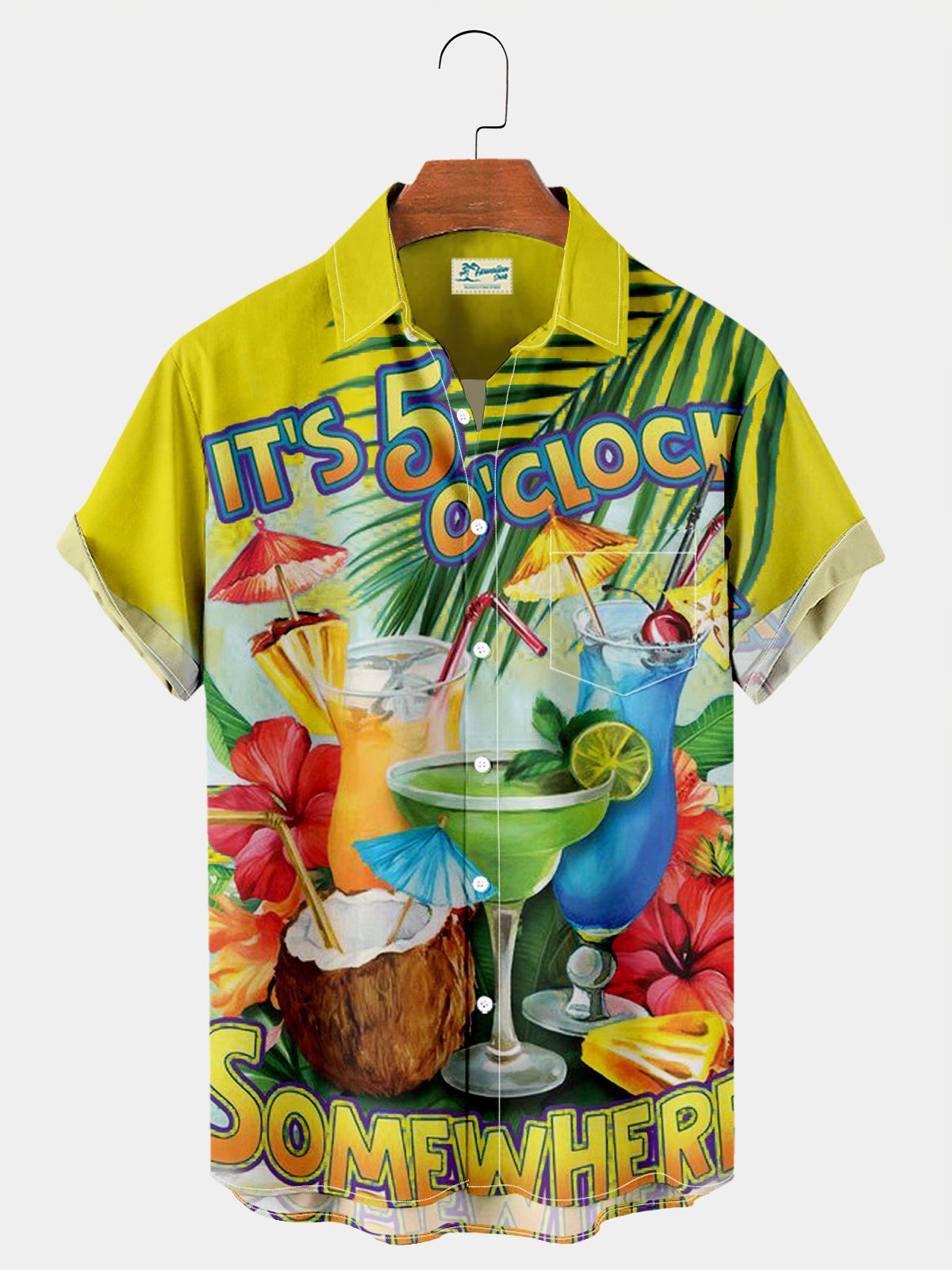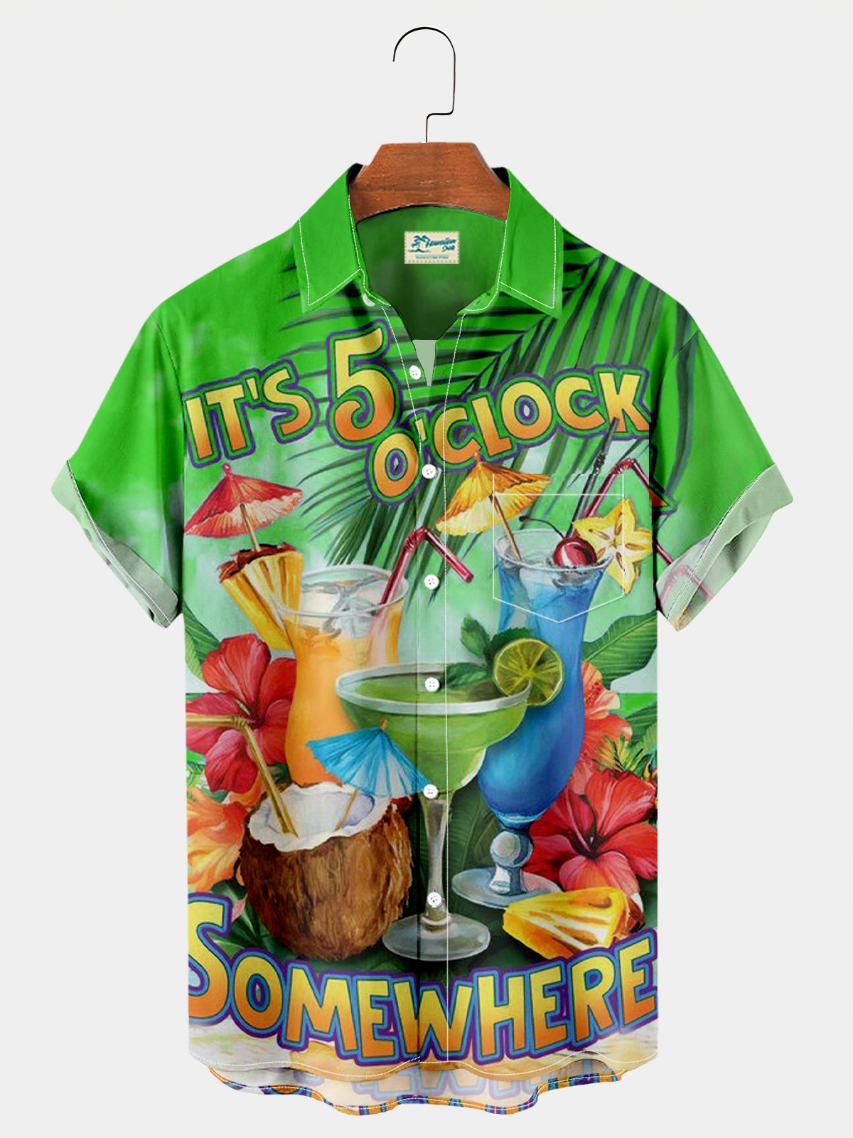 Parrot It’s 5 O’clock Somewhere Drinking Bird Breast Pocket Hawaiian Shirt Plus Size Vacation Shirt
