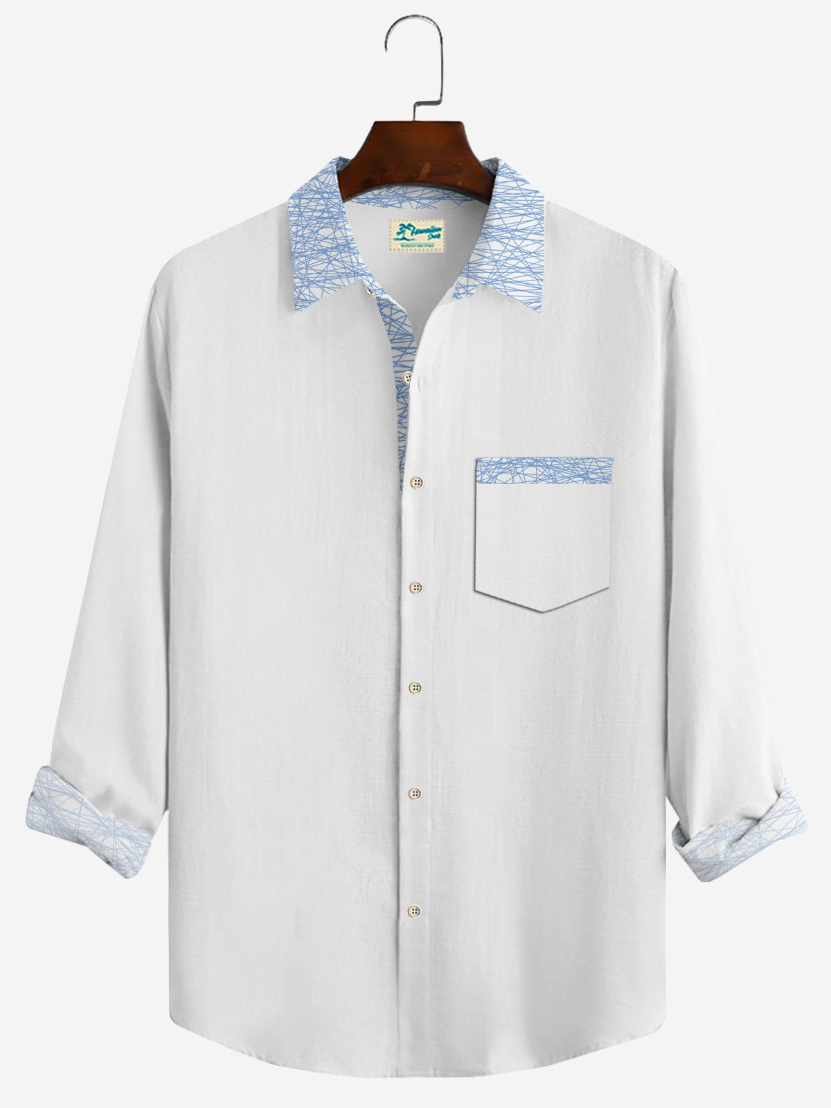 Alohadaddy Aztec Print Vintage Men's Button Pocket Long Sleeve Shirt