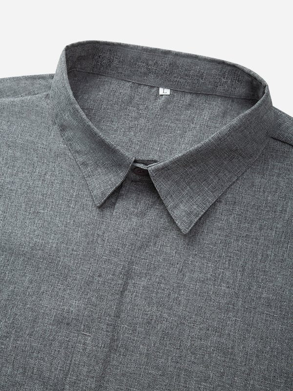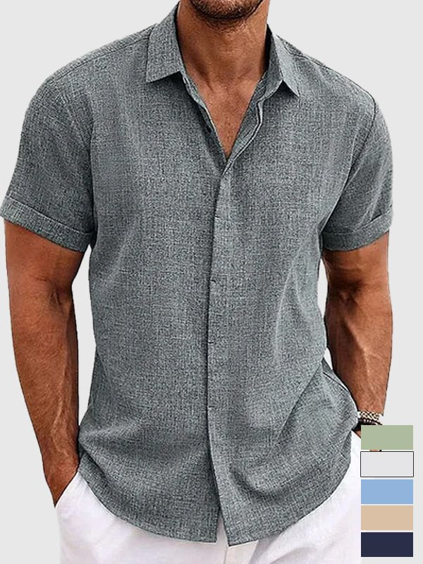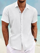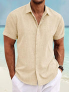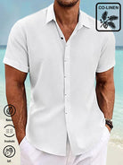 Alohadaddy Basic Cotton Linen Plain Men's Button Down Short Sleeve Shirt