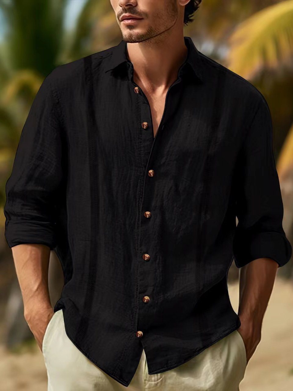 Alohadaddy Basic Men's Solid Buttoned Long Sleeve Shirt Big & Tall