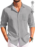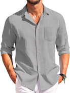 Alohadaddy Basic Men's Solid Color Printed Anti Wrinkle Pocket Button Long Sleeve Shirt Big Tall