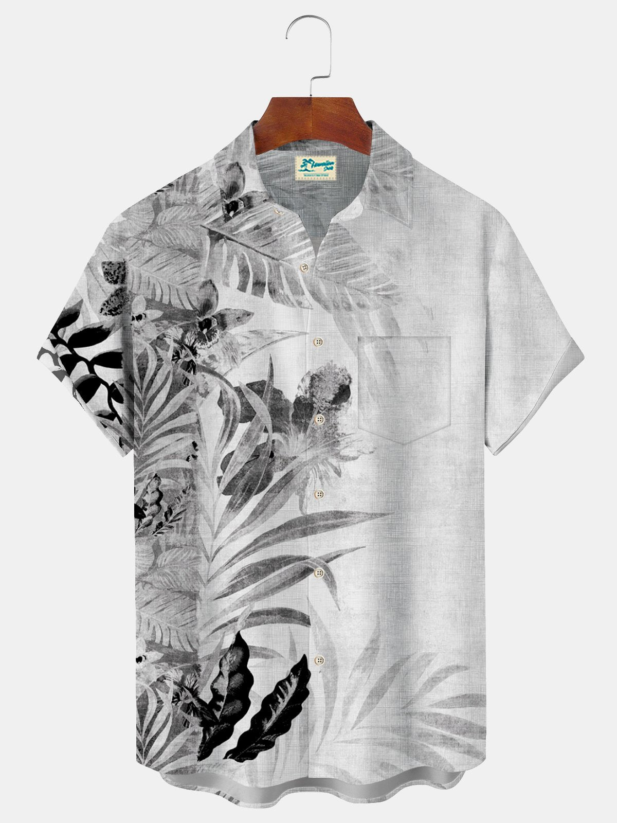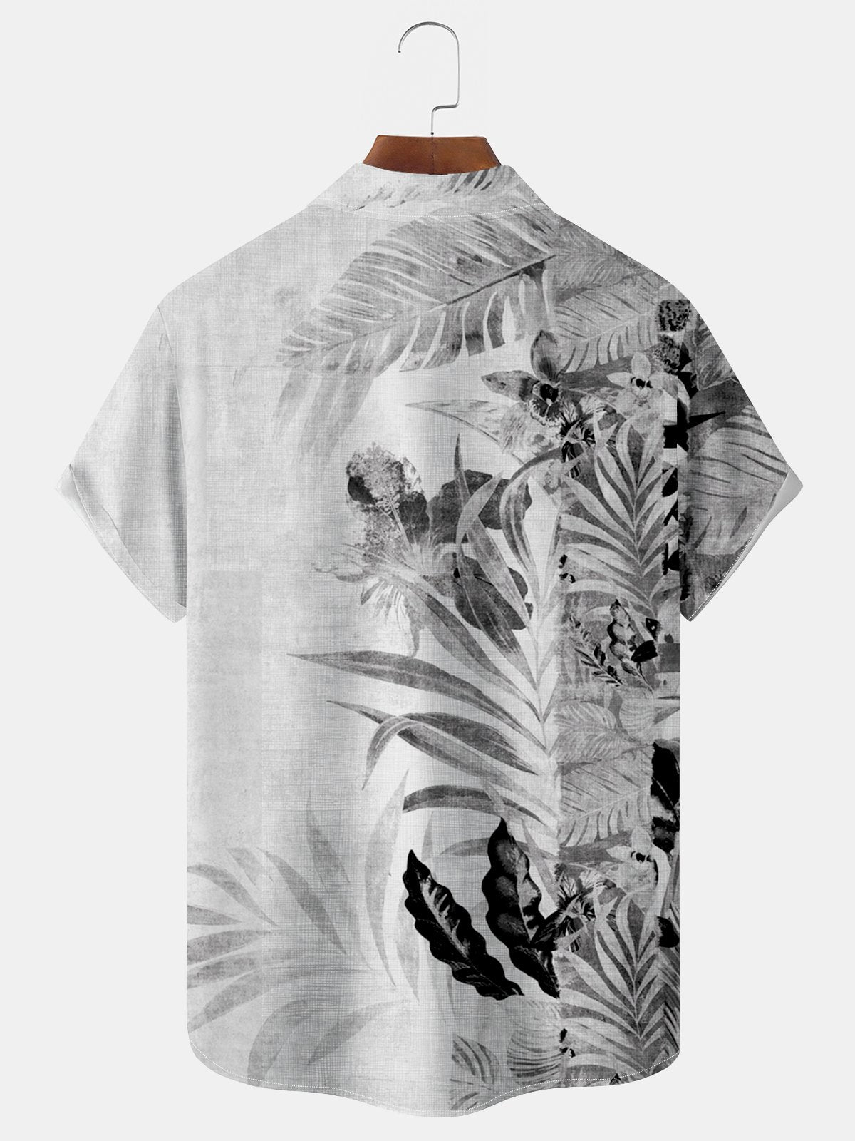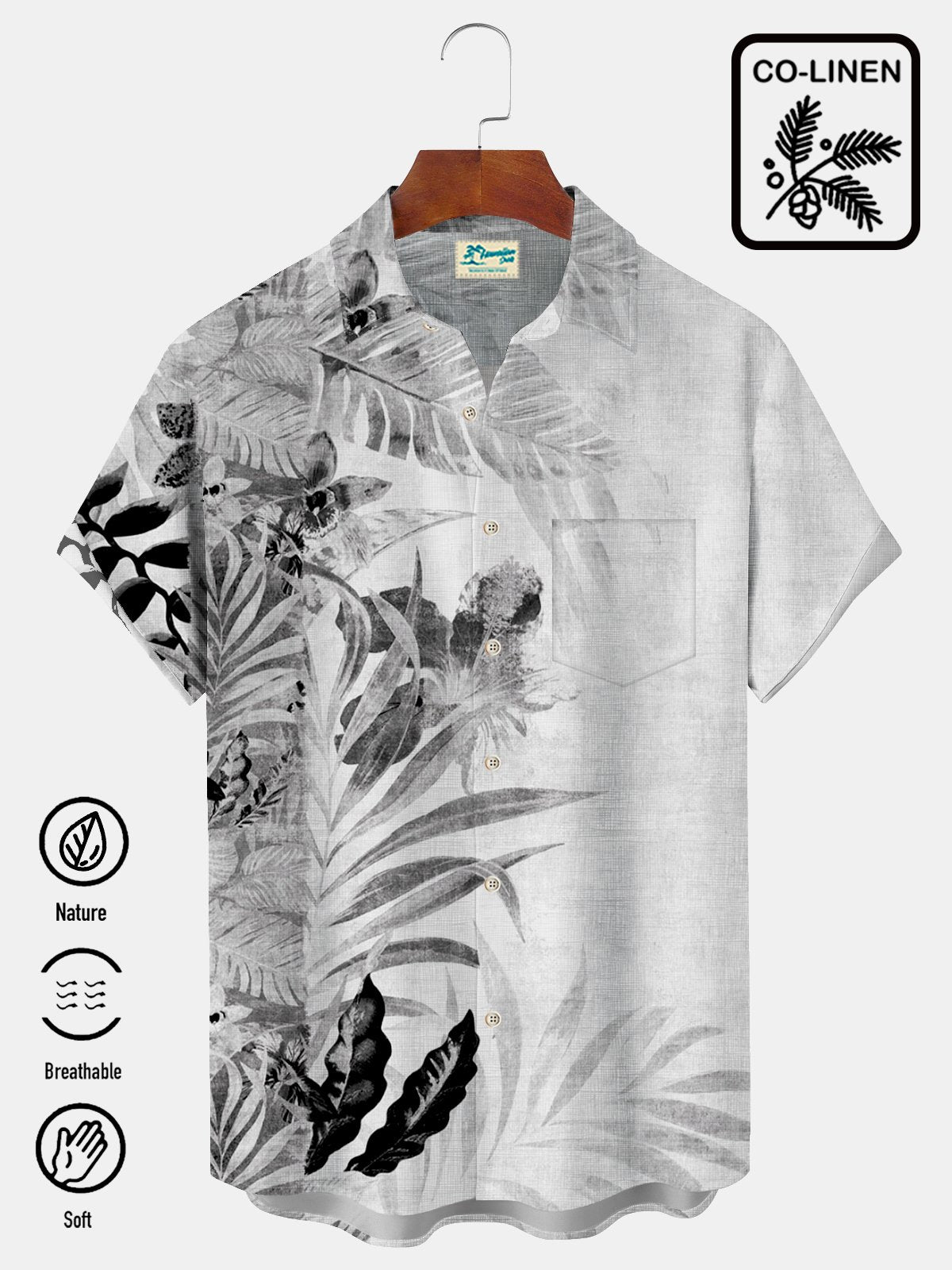 Alohadaddy Beach Vacation Ink Plant Cotton-Linen Men's Breathable Natural Hawaiian Plus Size Aloha Shirts