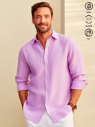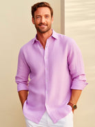 Alohadaddy Beach Vacation Purple Long Sleeve Shirts Textured Breathable Comfortable Aloha Button Camp Shirts