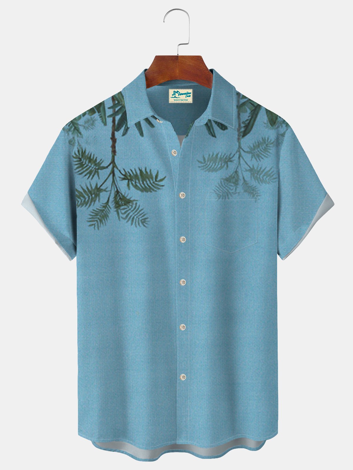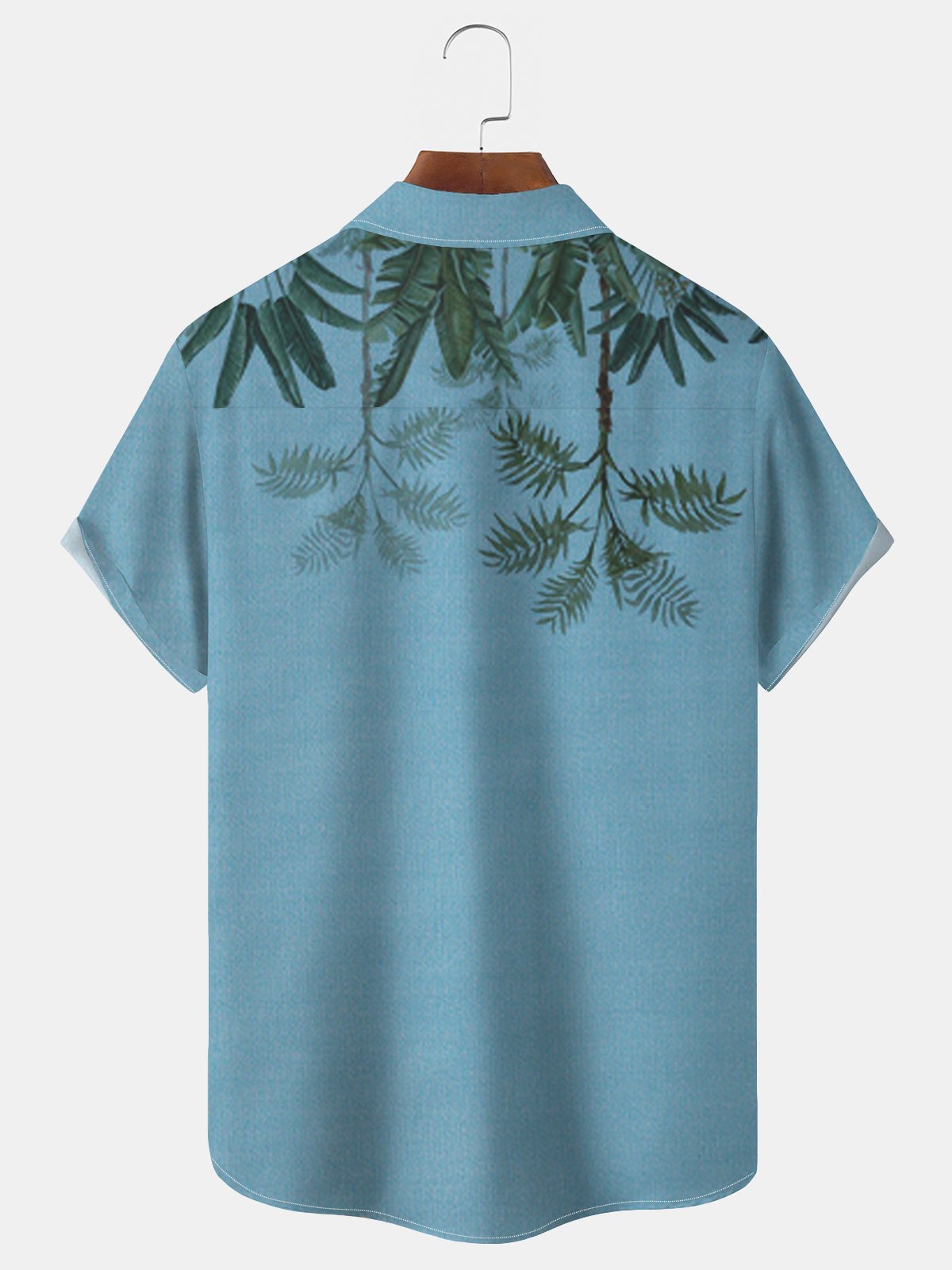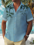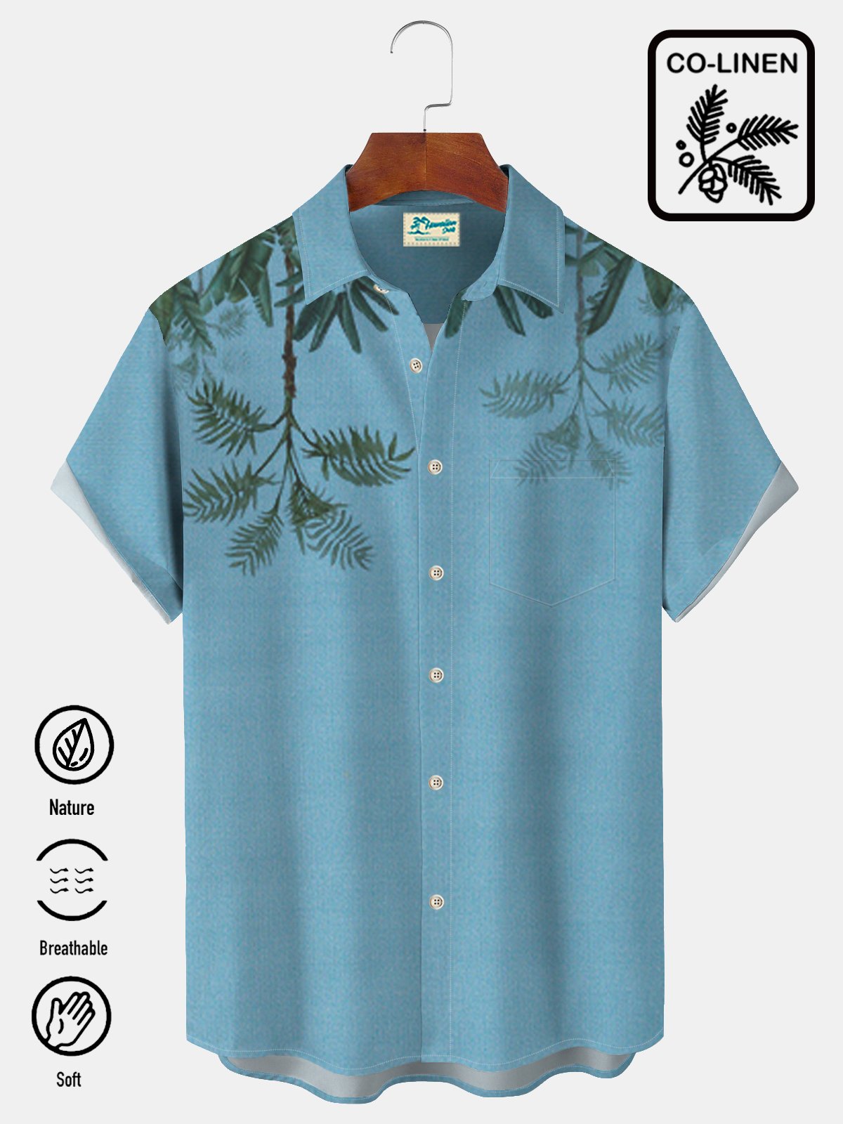 Alohadaddy Casual Cotton-Linen Palm Leaves And Greenery Men's Hawaiian Holiday Plus Size Breathable Natural Shirts