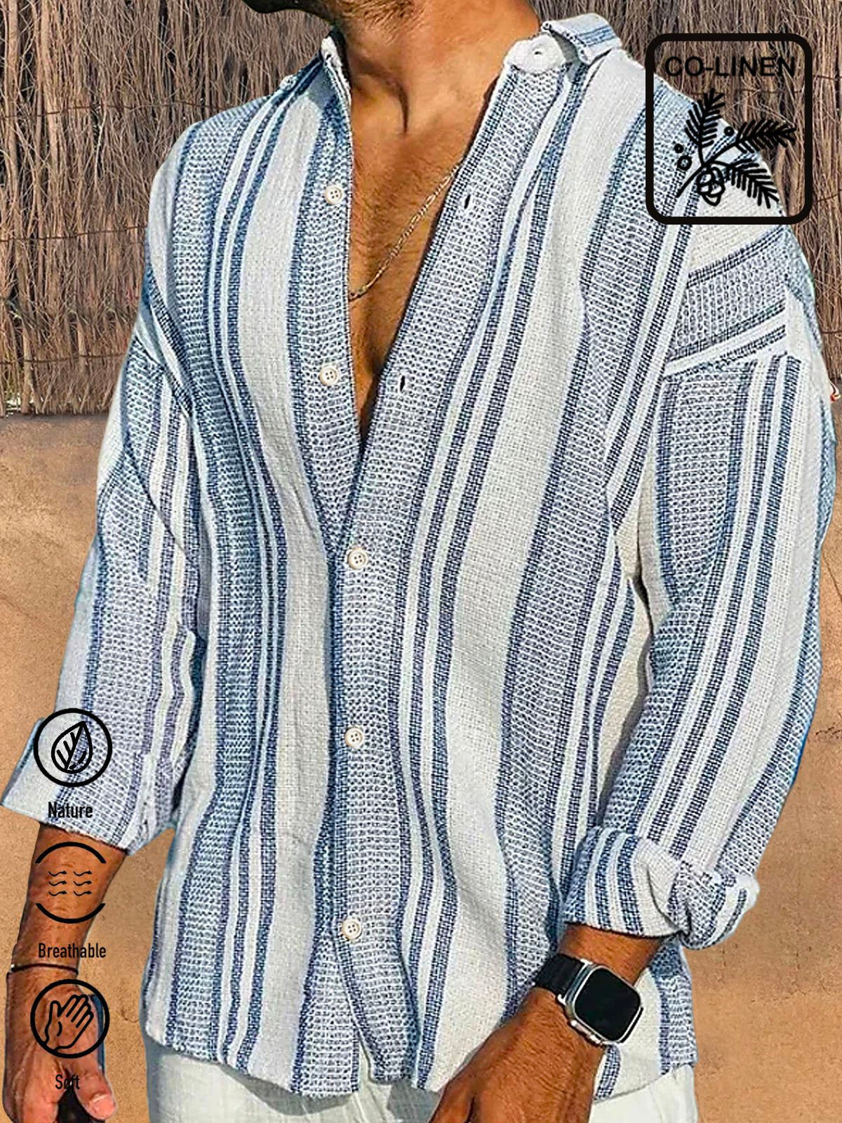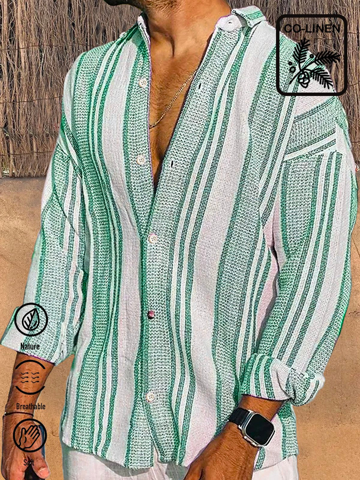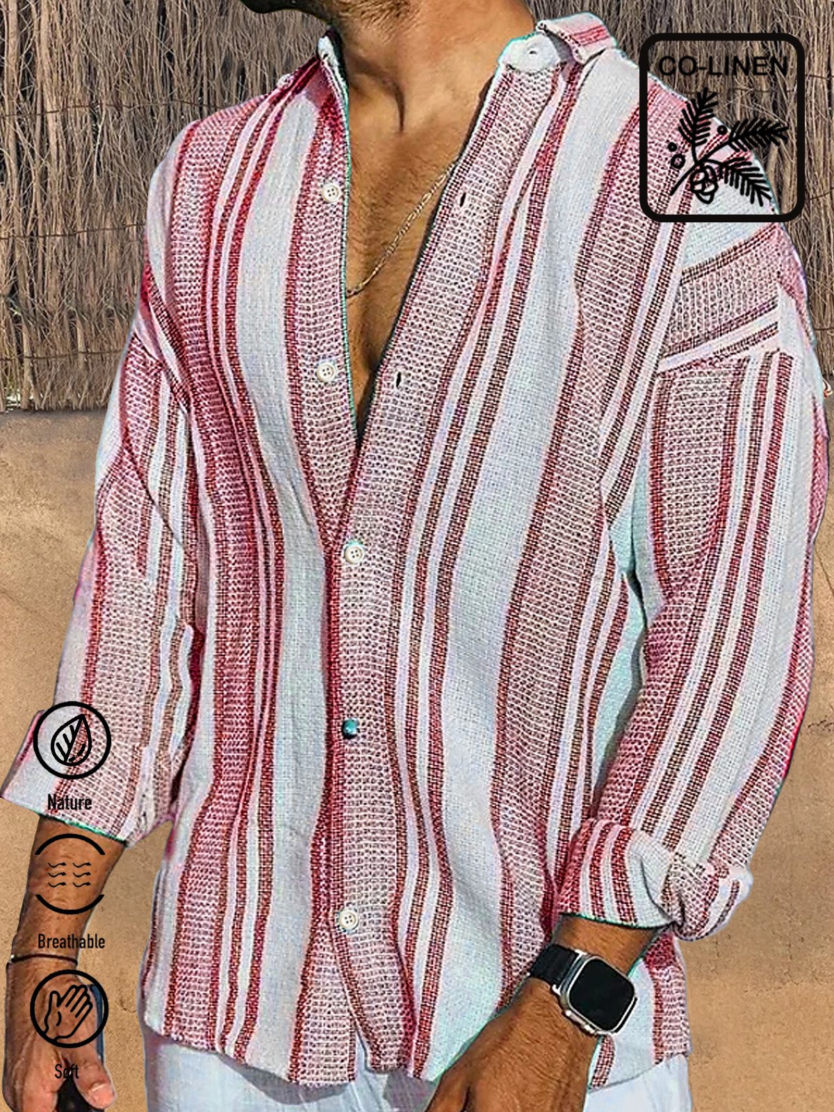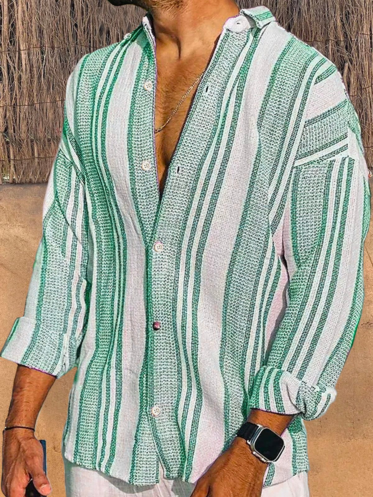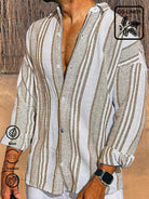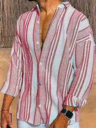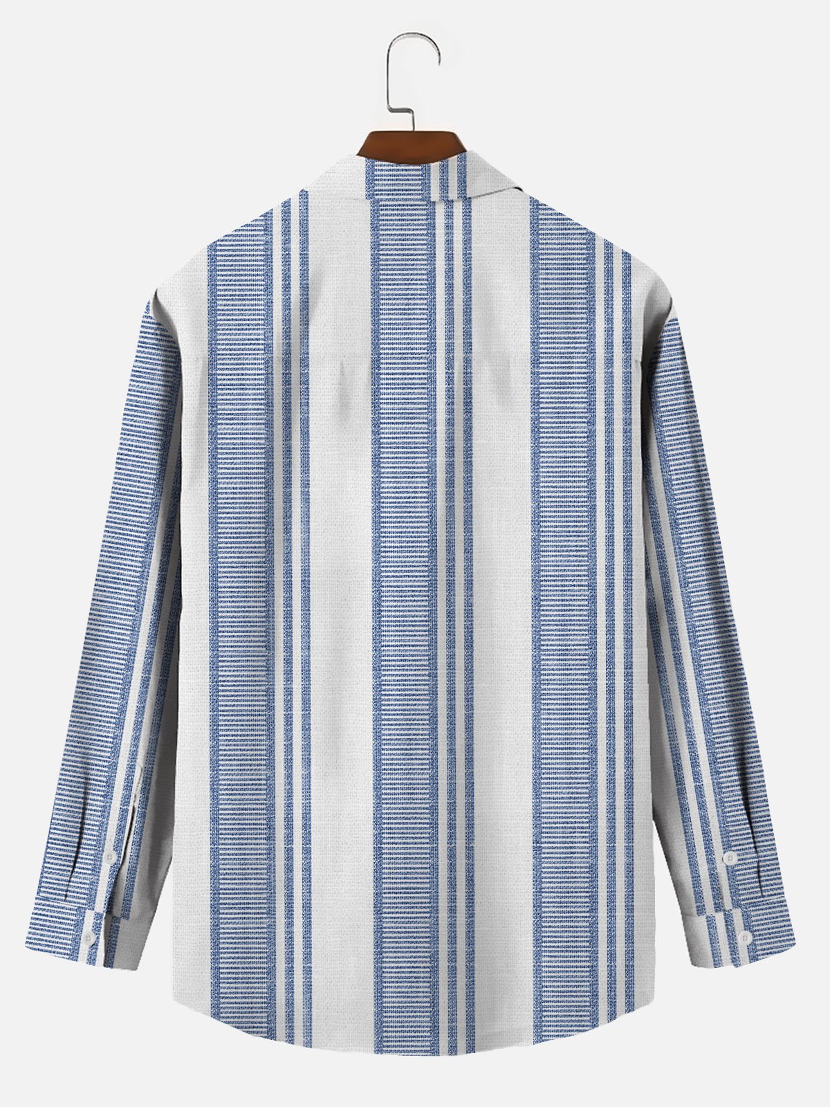 Alohadaddy Casual Striped Print Men's Long Sleeve Button Pocket Shirt
