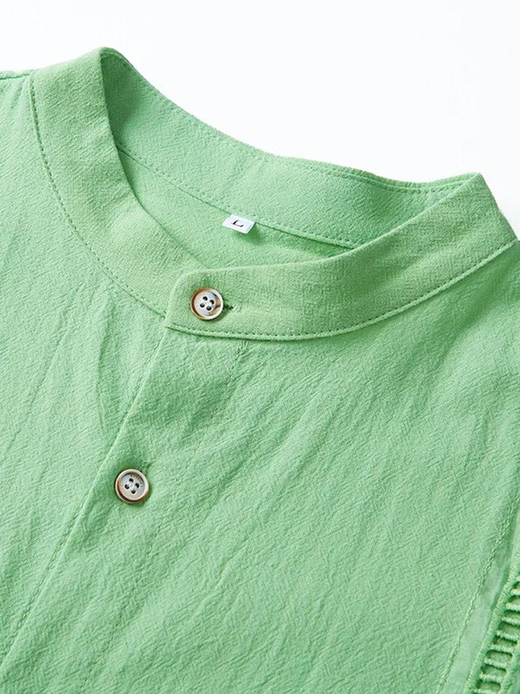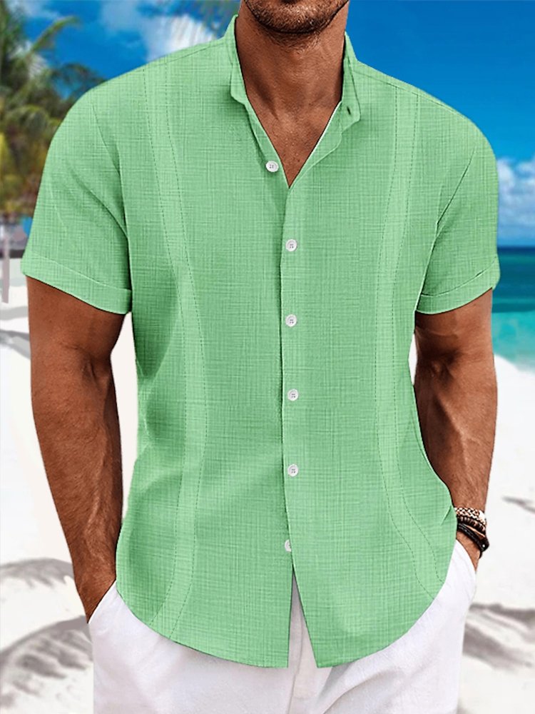 Alohadaddy Cotton Casual Stand Collar Short Sleeve Men's Shirt