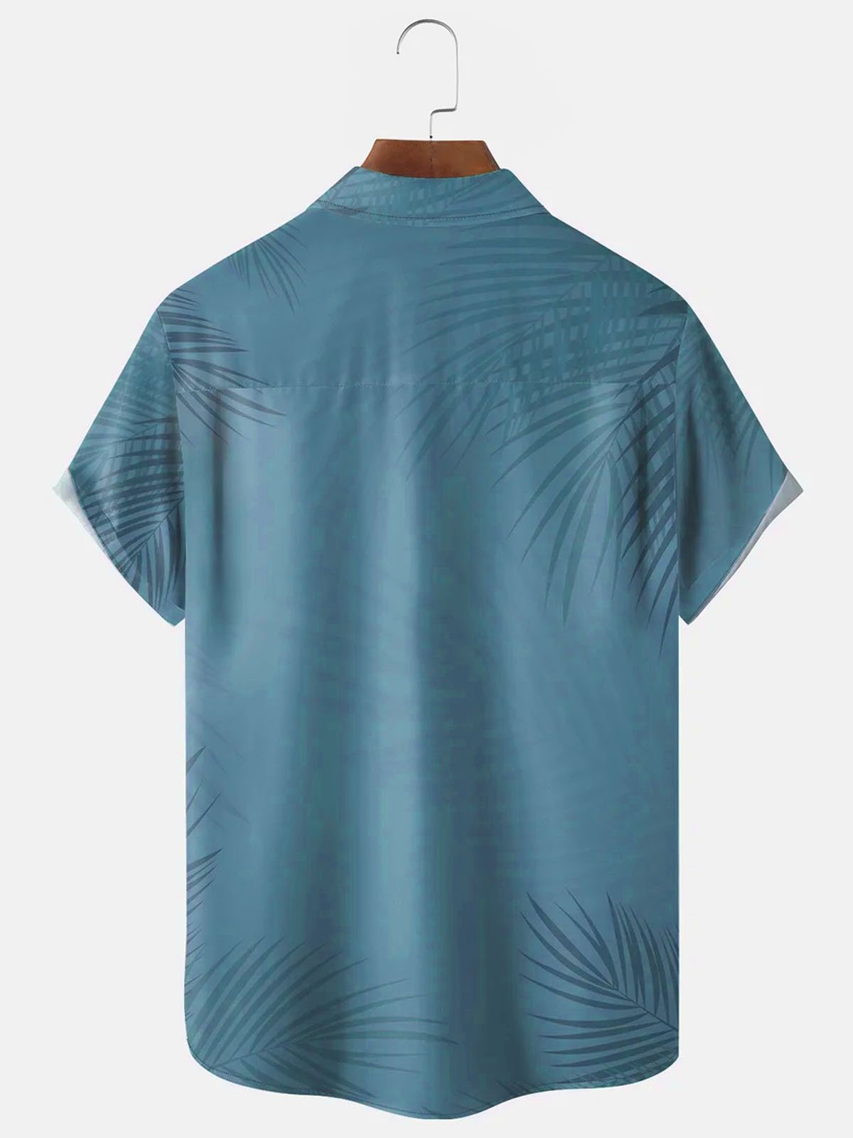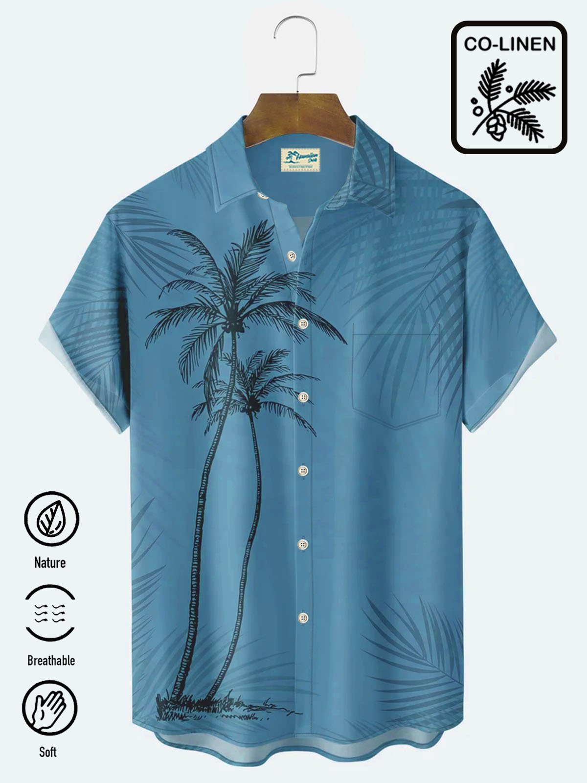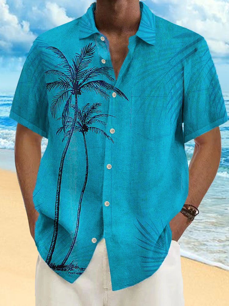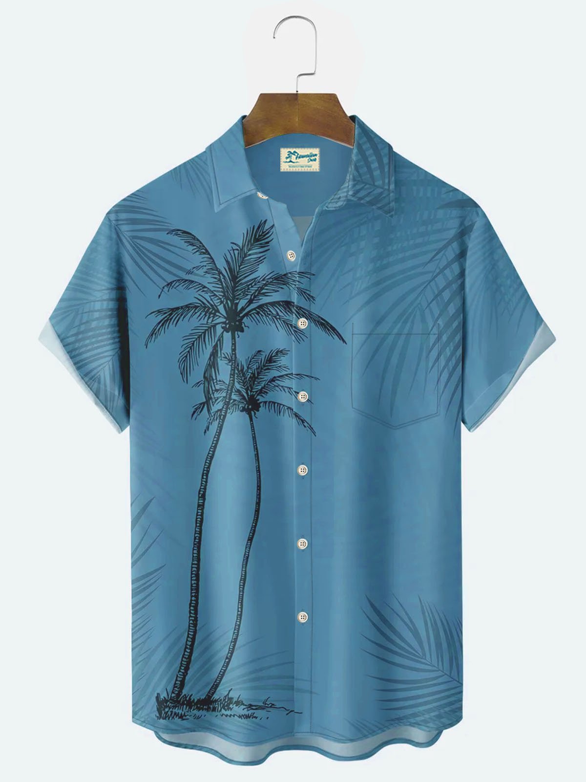 Alohadaddy Cotton Hawaiian Icy Blue Coconut Tree Men's Button Pocket Shirt