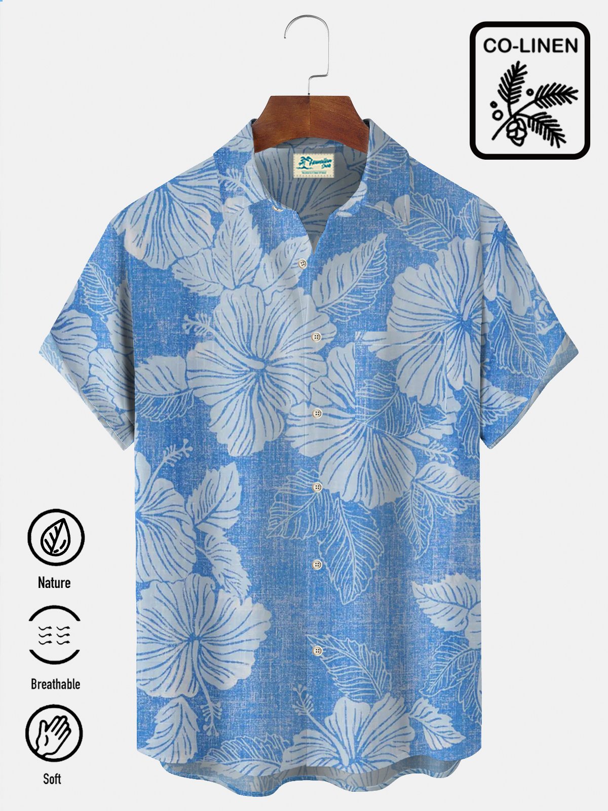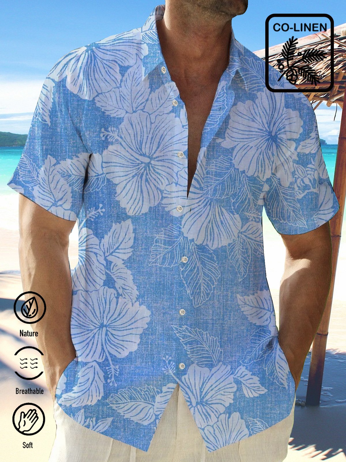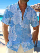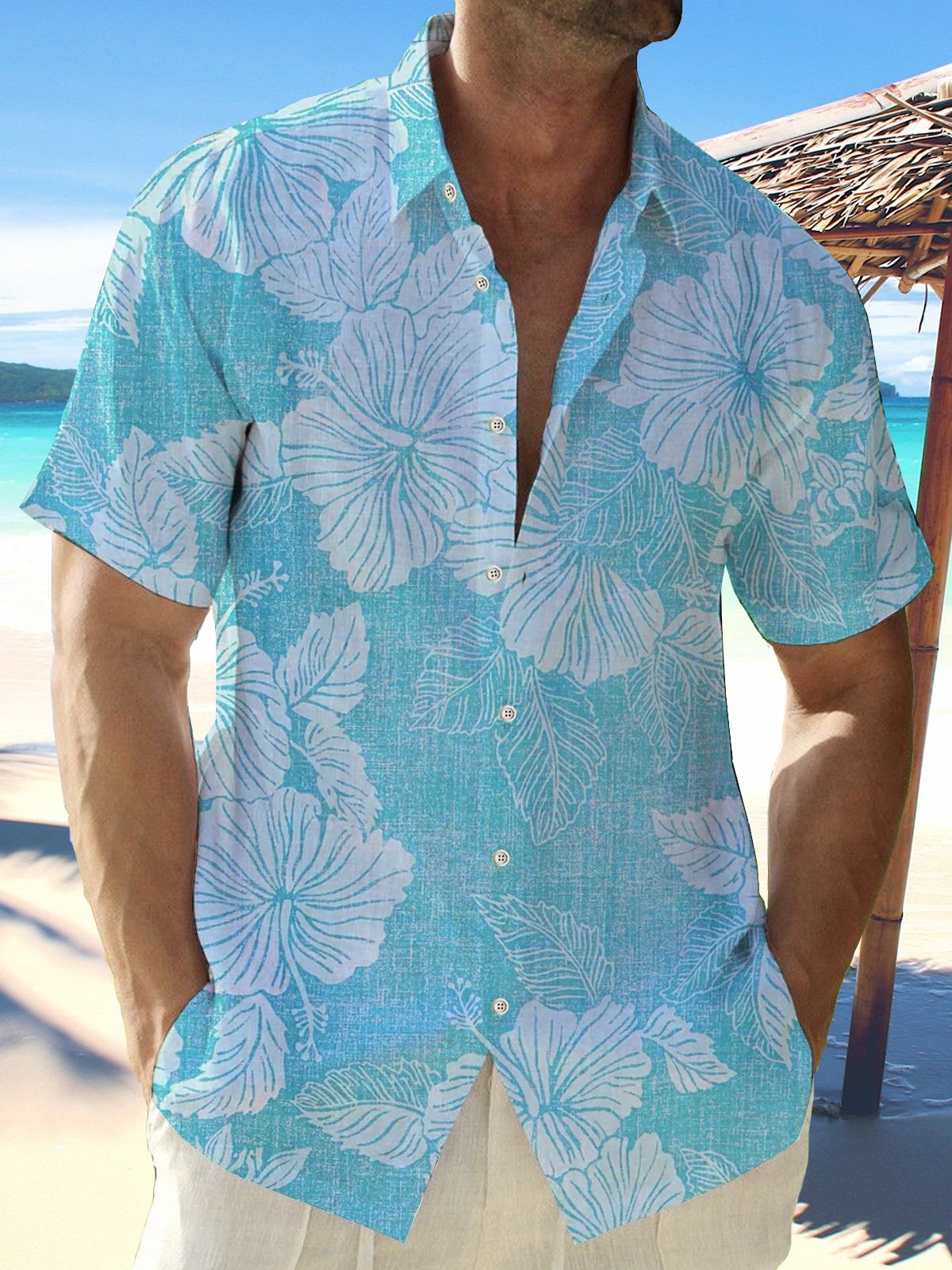 Alohadaddy Cotton Linen Floral Men's Vacation Beach Hawaiian Big & Tall Aloha Shirt