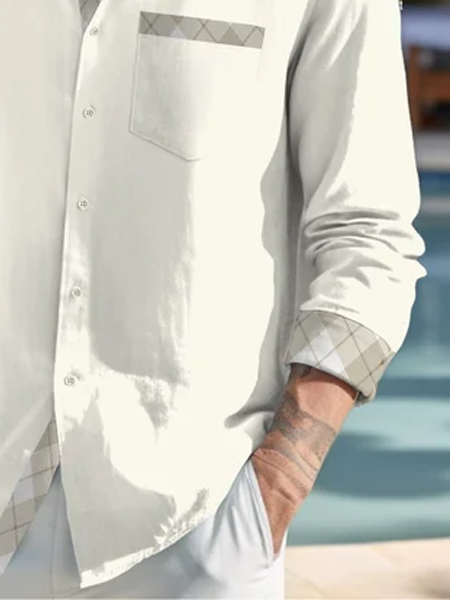 Alohadaddy Geometric Print Vintage Men's Button Pocket Long Sleeve Shirt