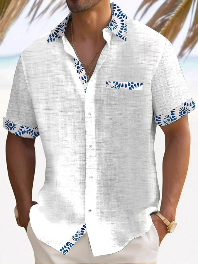 Alohadaddy Hawaiian Flower Partial 3D Digital Print Men's Button Pocket Short Sleeve Shirt Big & Tall