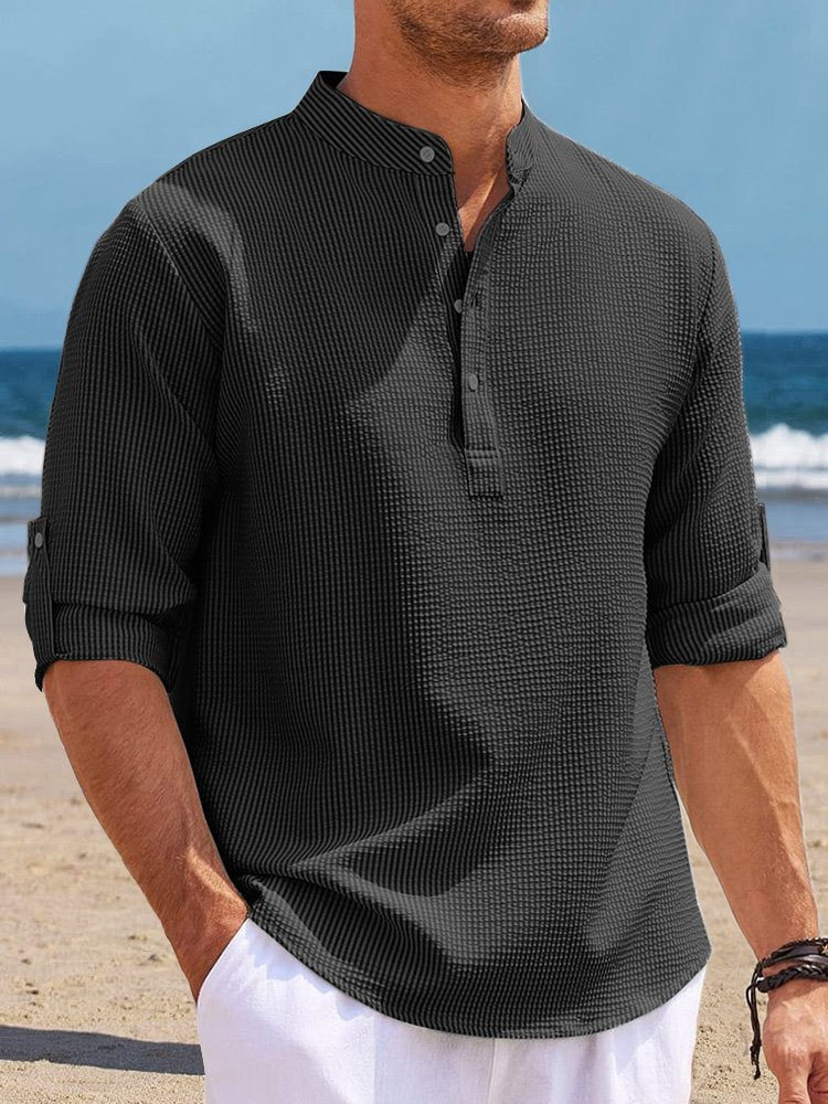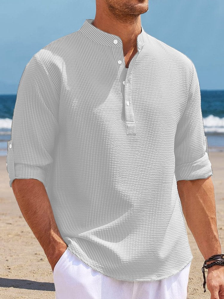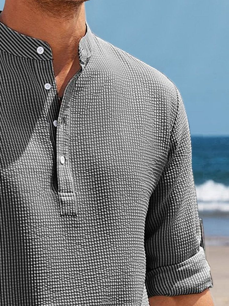 Alohadaddy Hawaiian Seersucker Cardigan Men's Button Down Long Sleeve Plus Size Shirt