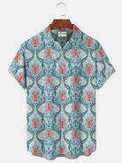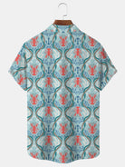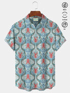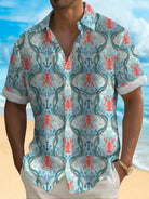Alohadaddy Holiday Beach Blue Men's Hawaiian Shirts Ocean Lobster Art Breathable Comfort Pocket Camp Shirts Big Tall