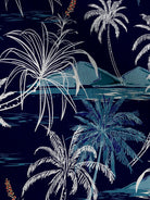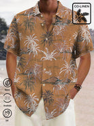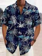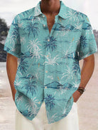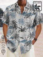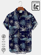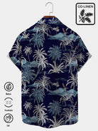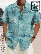 Alohadaddy Linen Hawaiian Coconut Tree Blue Print Chest Bag Shirt Plus Size Holiday Shirt