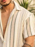 Alohadaddy Men's Retro Striped Print Stretch Shirt Big Tall