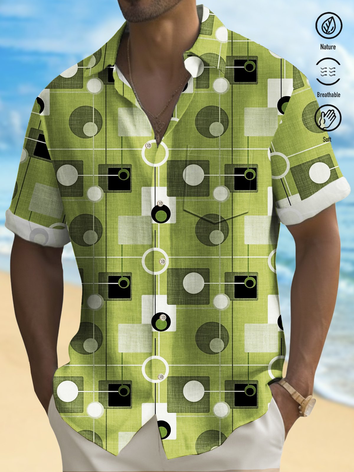 Alohadaddy Retro Mid Century Geometric Men's Hawaiian Shirt Oversized Stretch Aloha Shirt