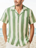 Alohadaddy Vintage Stripe Print Chest Pocket Men's Tall Shirt Big Tall