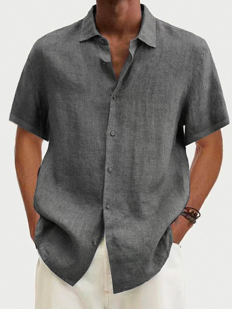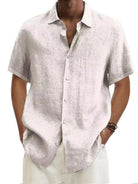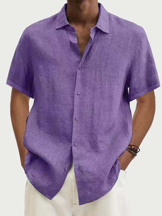 Men's Solid Color Cotton Linen Button Short Sleeve Shirt