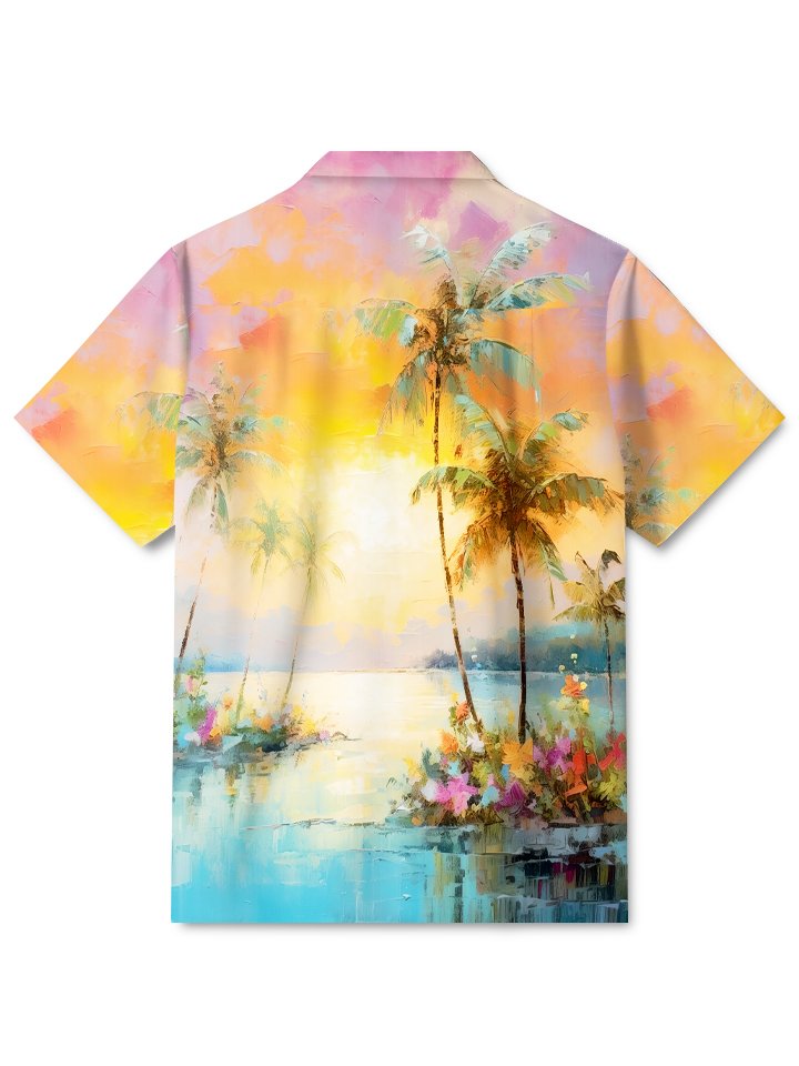 Alohadaddy Beach Coconut Tree Button Pocket Casual Short Sleeve Shirt