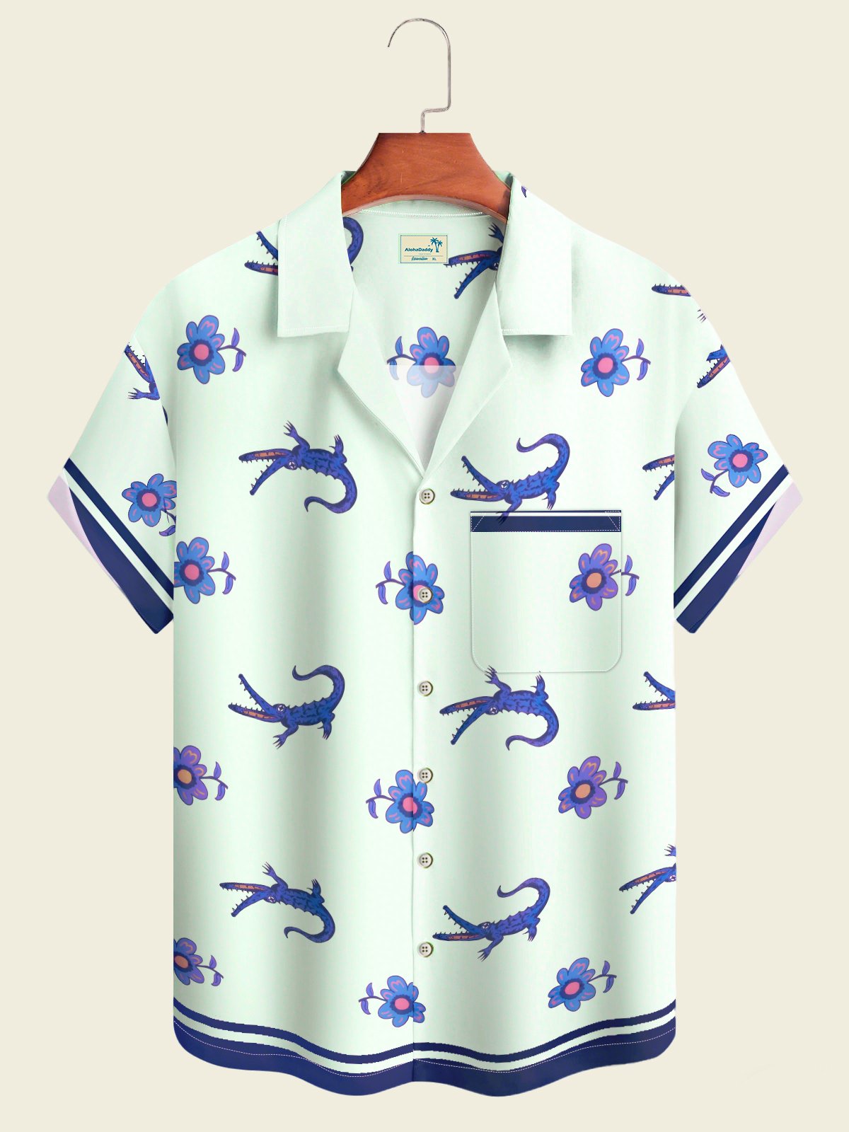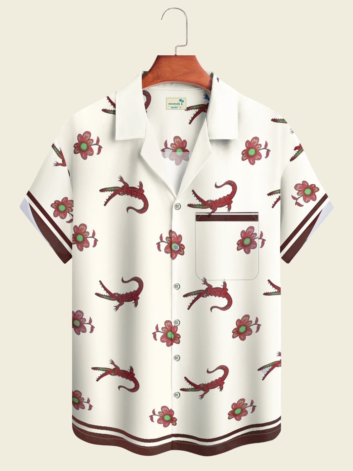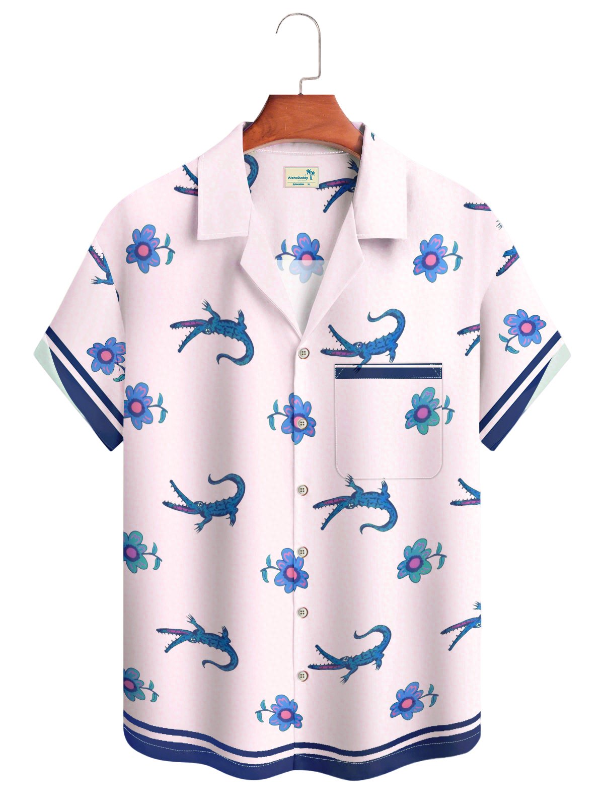 Alohadaddy Hawaiian Crocodile Flowers Art Print Button Cardigan Pockets Elastic Oversized Long Short Sleeve Shirt