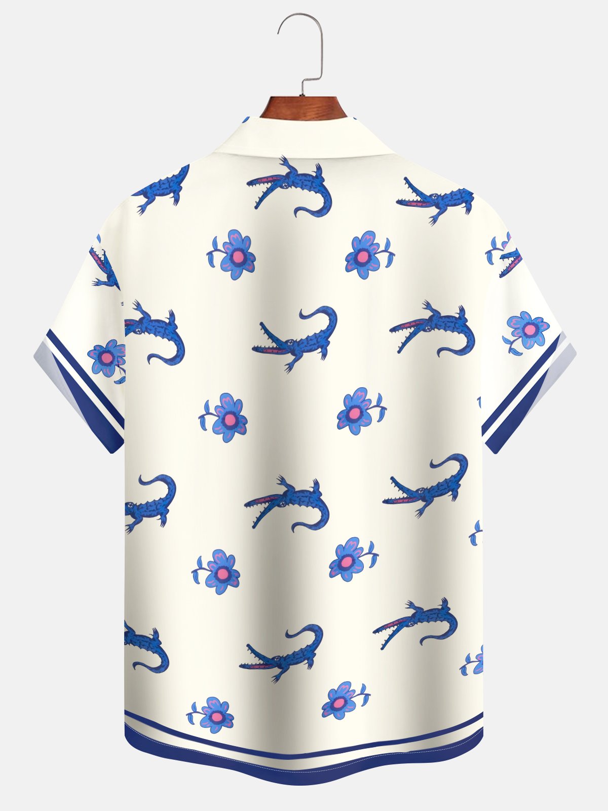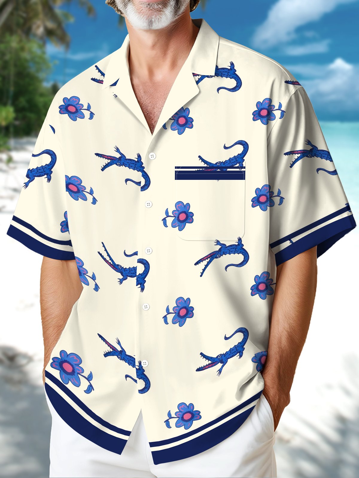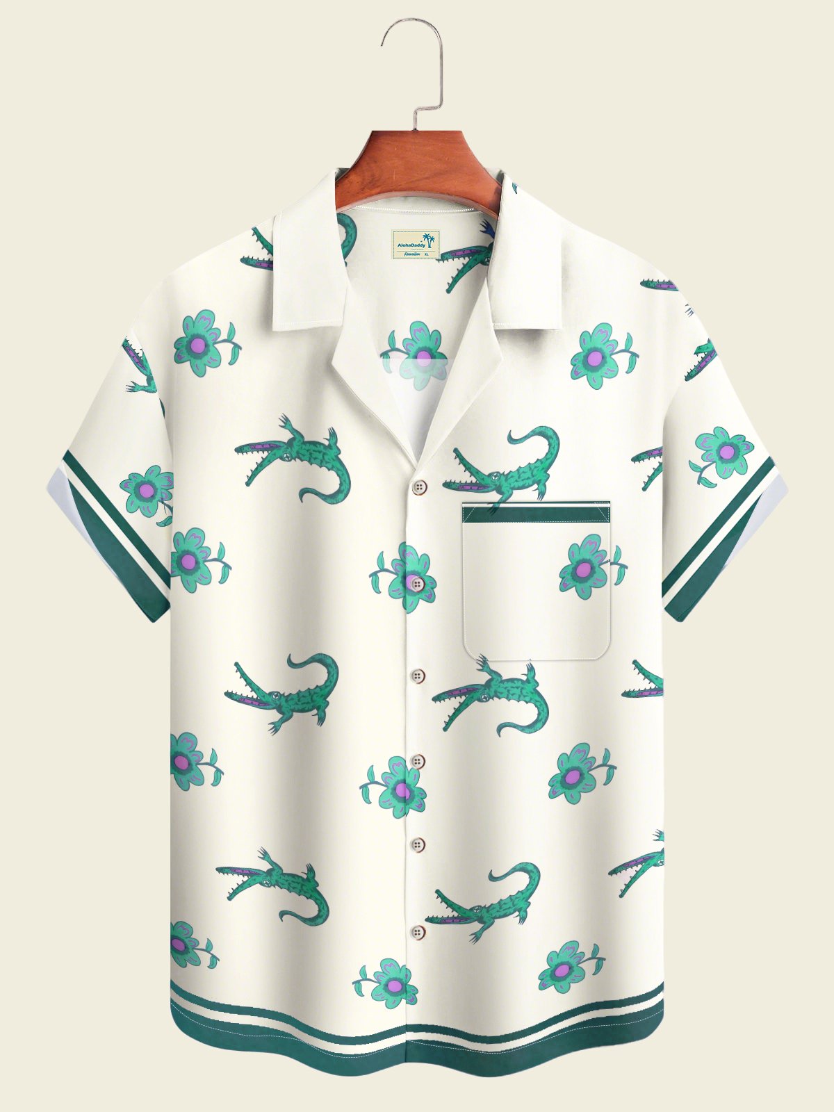 Alohadaddy Hawaiian Crocodile Flowers Art Print Button Cardigan Pockets Elastic Oversized Long Short Sleeve Shirt