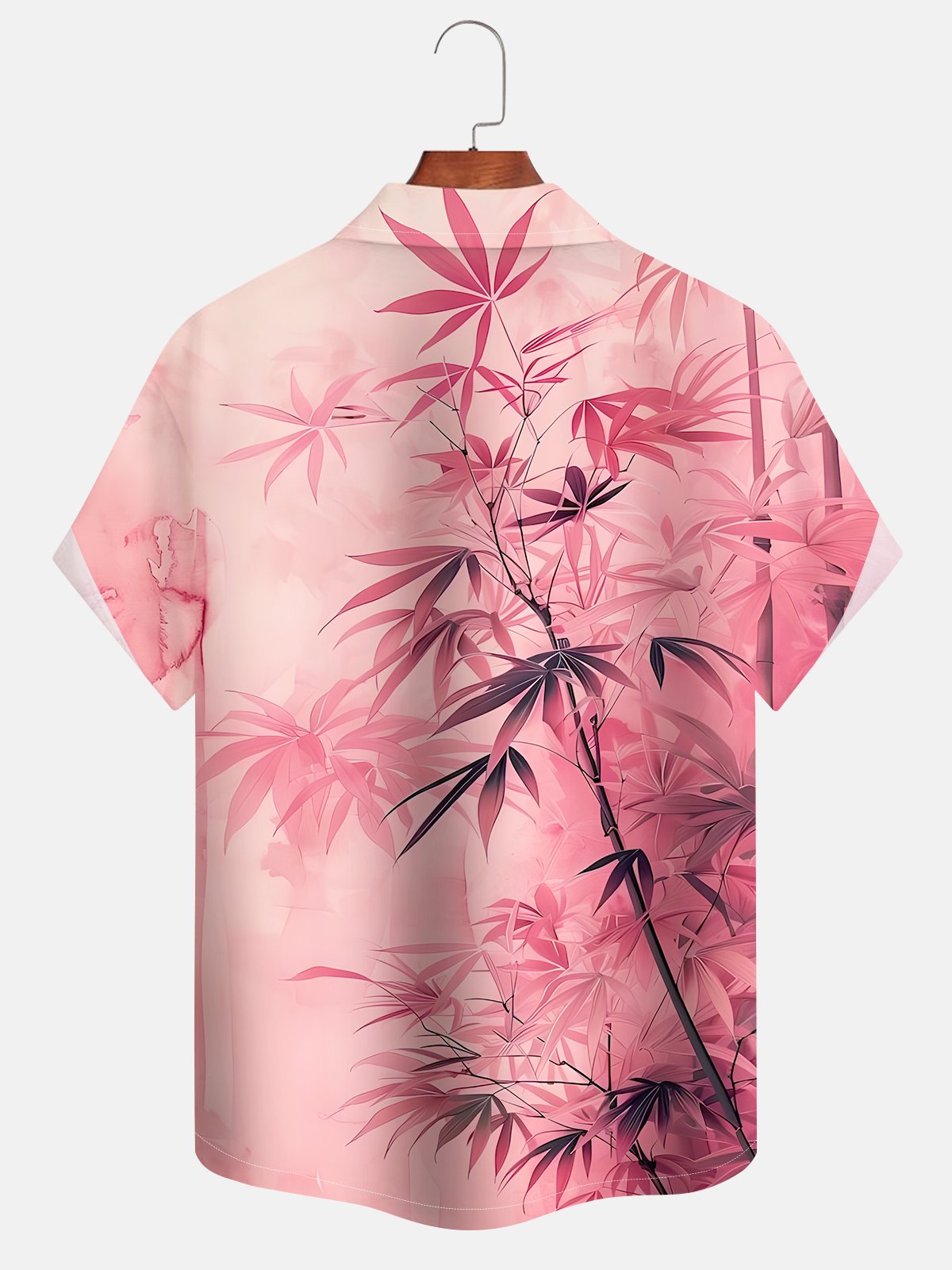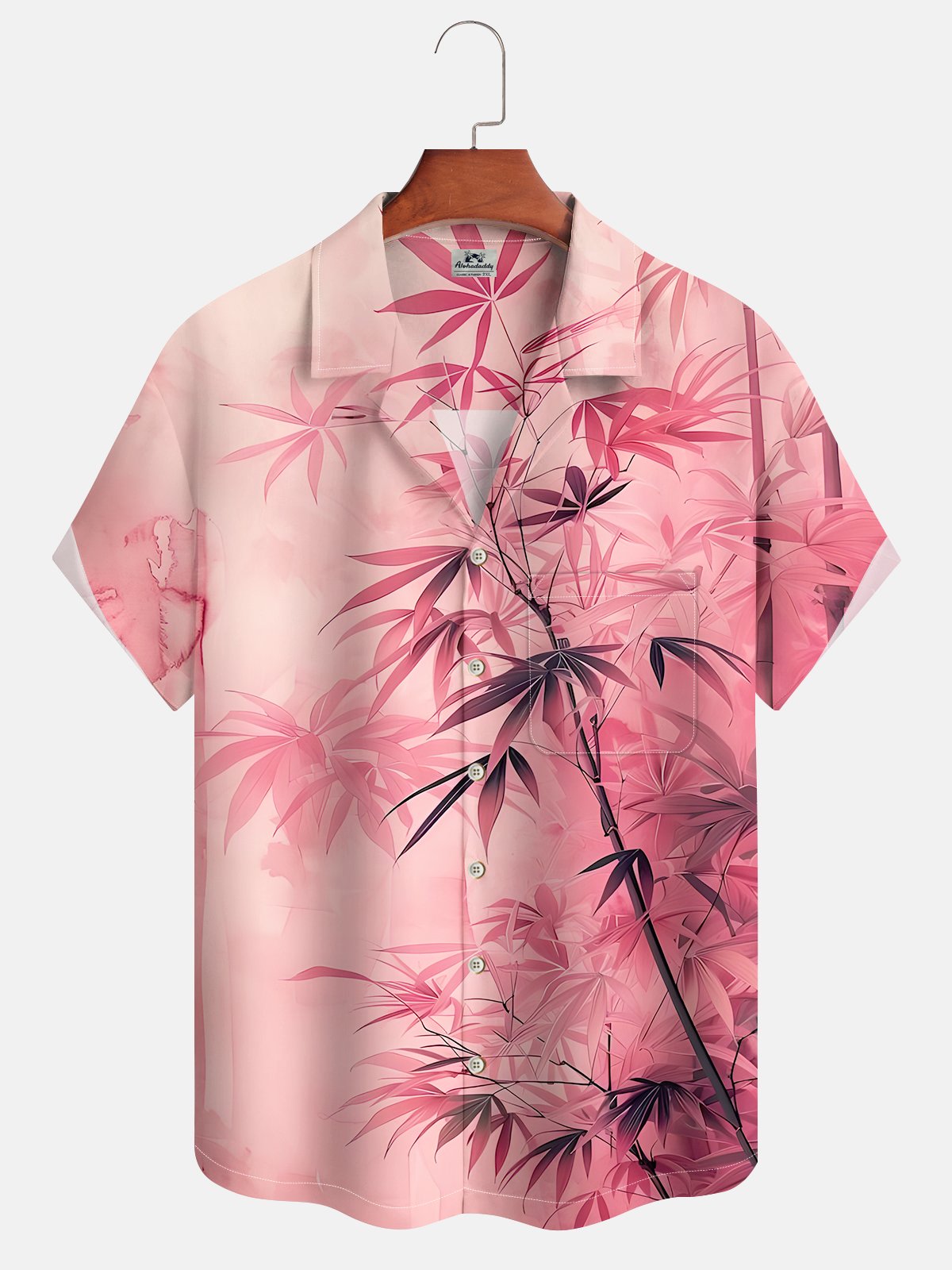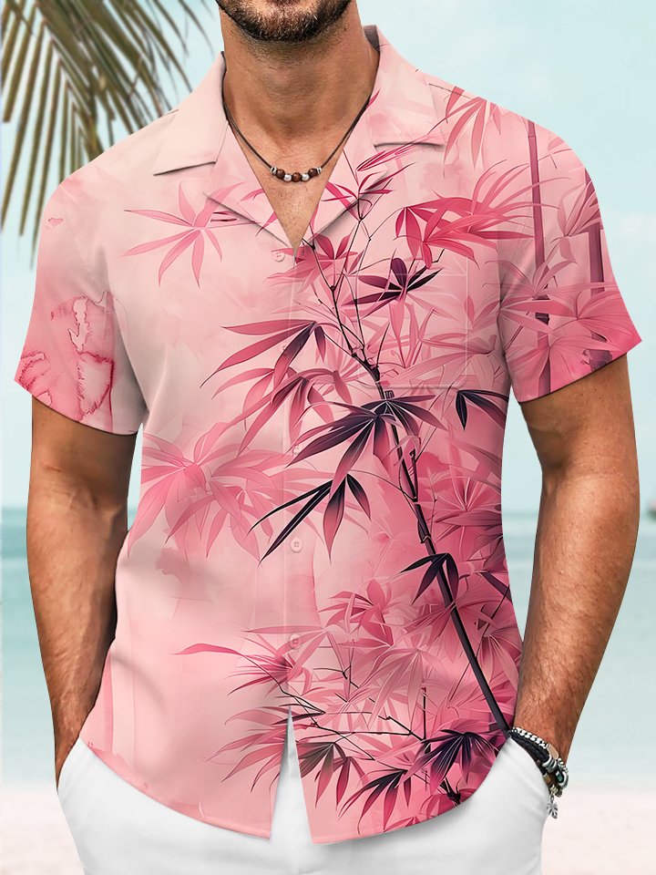 Alohadaddy Hawaiian Vacation Bamboo Asymmetric Print Art Button Cardigan Pocket Polyester Stretch Large Size Long Short Sleeve Shirt