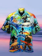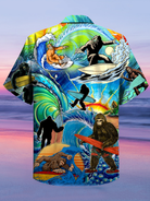 Alohadaddy Men's Surf Monkey Print Stretch Oversized Short Sleeve Shirt