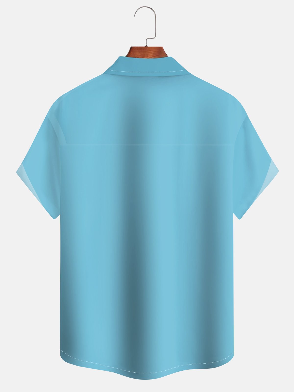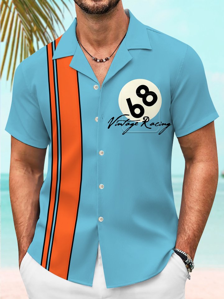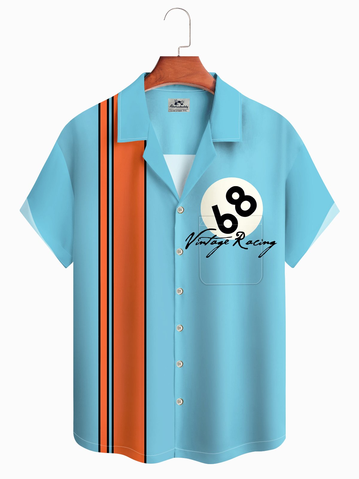 Alohadaddy Number Casual Geometric Stripes Button Pocket Casual Short Sleeve Shirt
