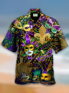 Holiday Mardi Gras Men's Hawaiian Shirts Stretch Plus Size Casual Aloha Shirts