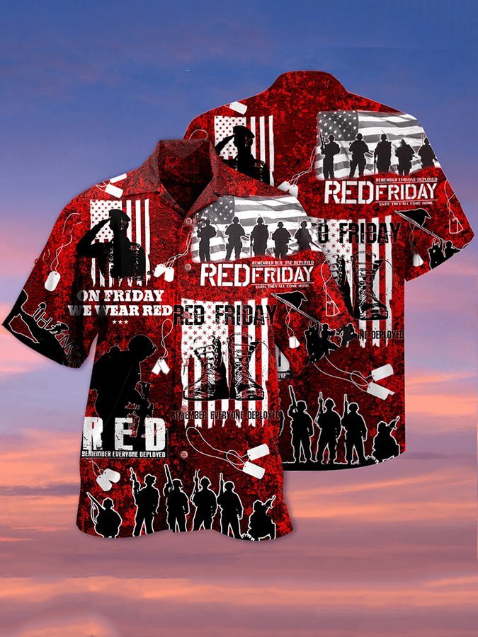 Men's Veteran Red Friday American Casual Hawaiian Shirt