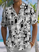 Alohadaddy® Casual Cat Paw Print Art Chest Pocket Men's Short Sleeve Shirt Big & Tall